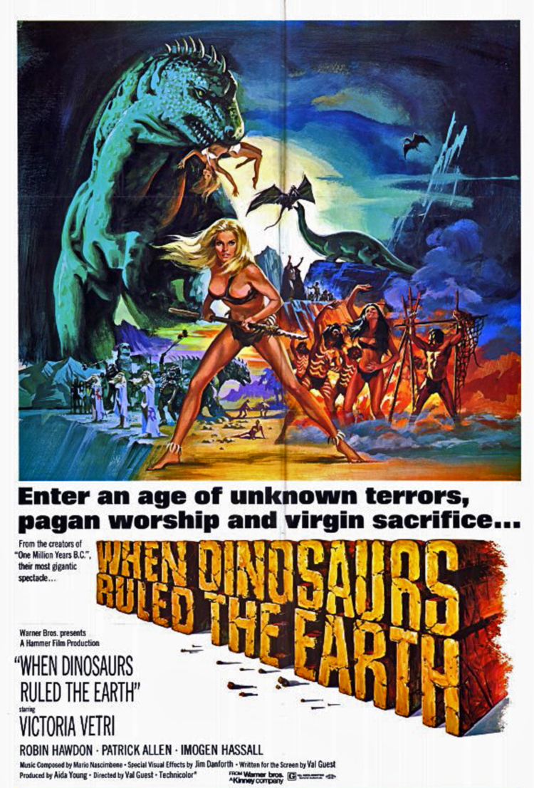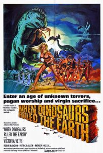 WHEN DINOSAURS RULED THE EARTH (1970)A prehistoric adventure pitting tribes of cave people against both each other, and a number of dinosaurs! Apes the success of the 1966 Raquel Welsh vehicle One Million Years, B.C. and features quality stop-motion dinosaurs animated by Jim Danforth.