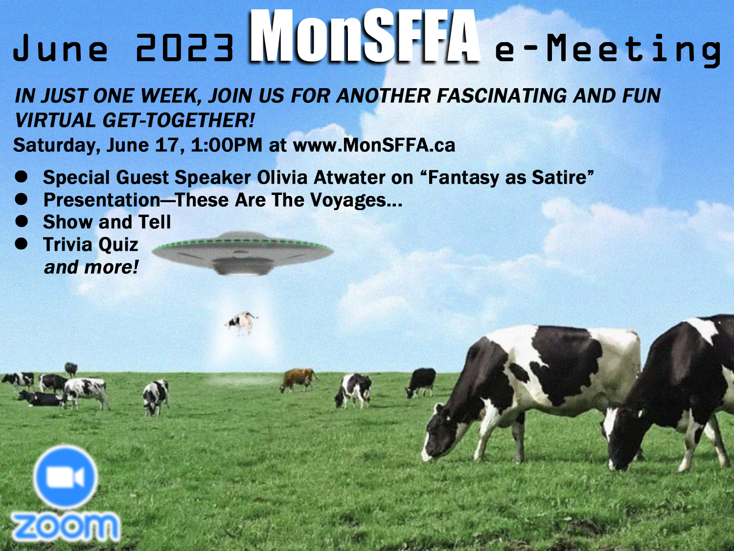 We will also host a “Relax-a-ZOOM” Virtual Picnic right here at www.MonSFFA.ca on Saturday, July 15, at 1:00PM—have your favourite summer snacks and libations on hand! No formal programming is planned, just a game of some kind, and an afternoon of casual conversation with friends on topics SF/F and fannish, including, given this opportunity, a little bit of club business for which the input of our membership is desired.