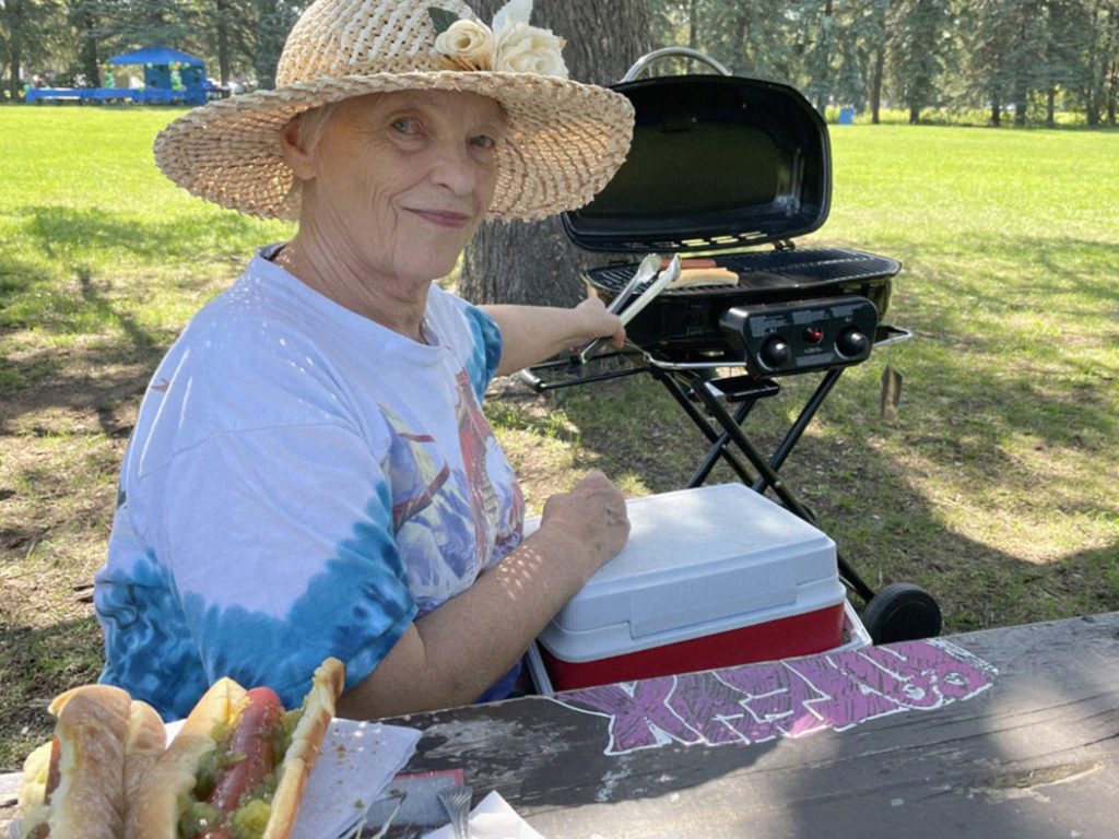 Club president Cathy Palmer-Lister inaugurates “Dragon’s Breath” grill at last year’s Barbecue-in-the-Park.