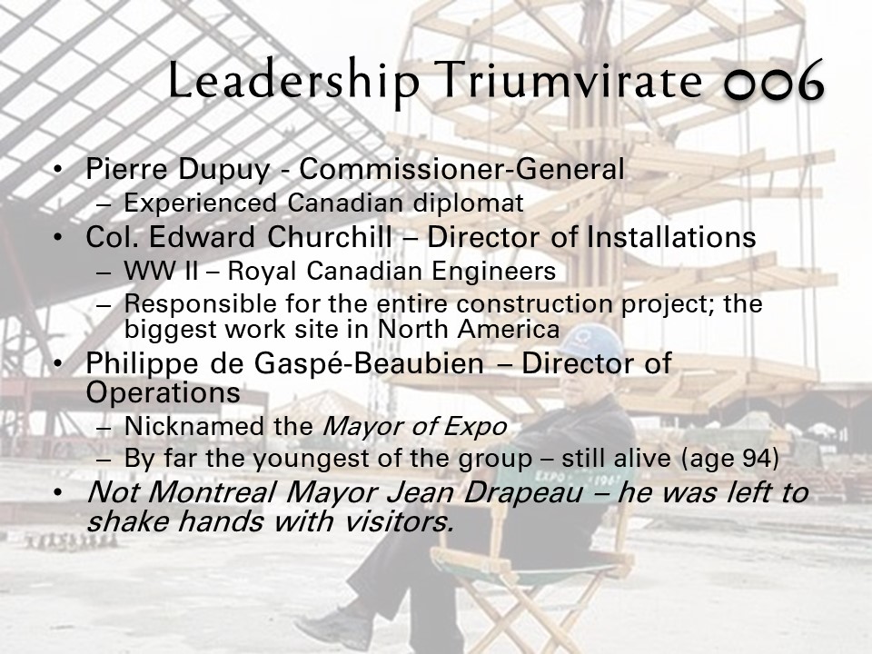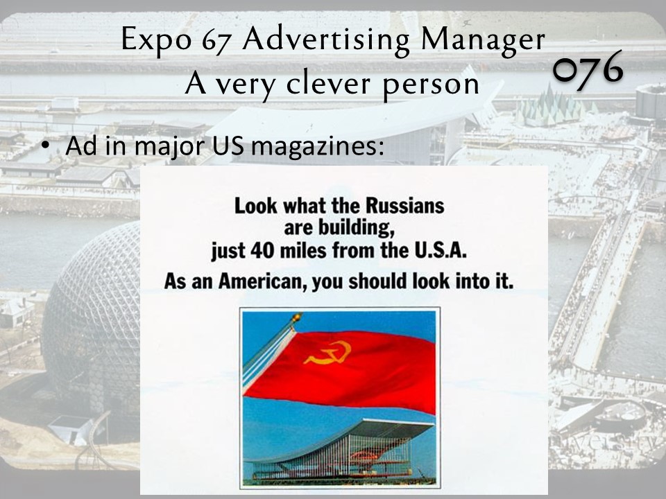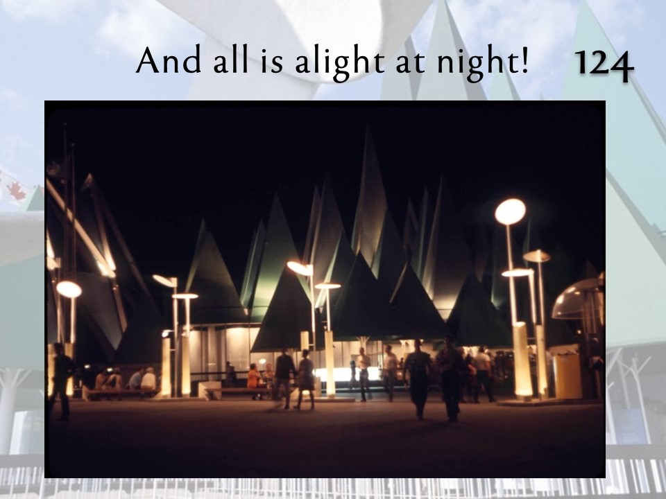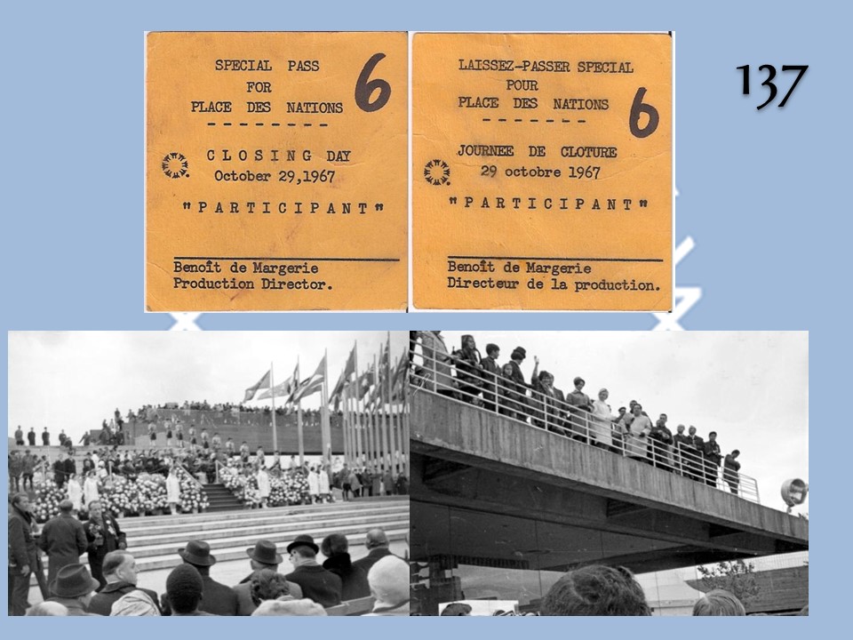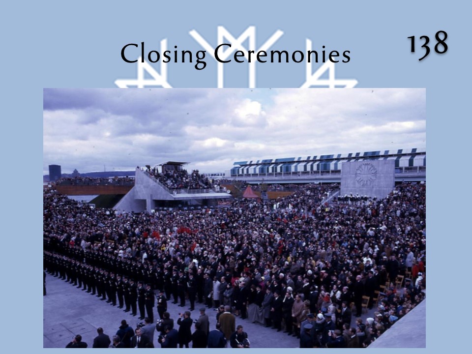 Rather than pavilions conforming to cookie-cutter designs, the finest architects provided their imagination. Designers, filmmakers, and others put together a 1,000-acre showplace and playground. Everyone who was anyone was in Montreal that summer, from performers to world leaders.