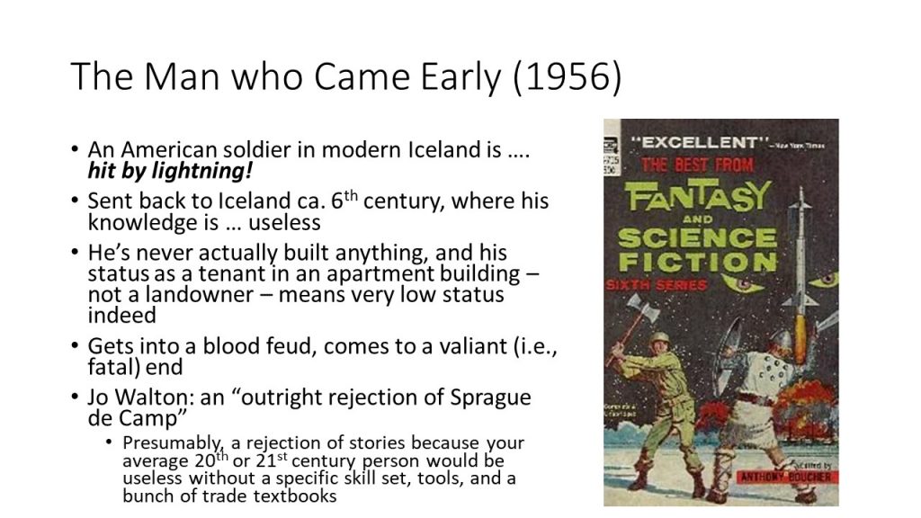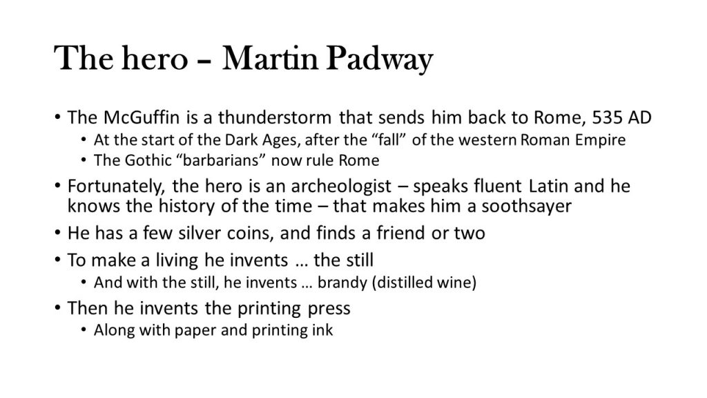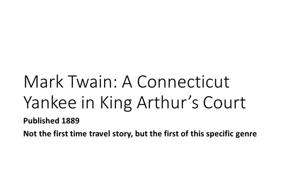 Mark Twain’s A ConnecticutYankee in King Arthur’s Court(1889) was not the first time travel story. However, it was probably the first in the subgenre of the person transported to an earlier era, who decides to bring his new home “up to date” as part of his survival plan. 21st century inflation has brought us from one individual to entire islands, fleets, and towns.