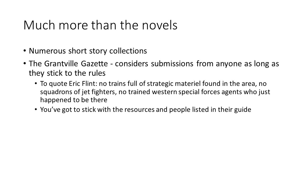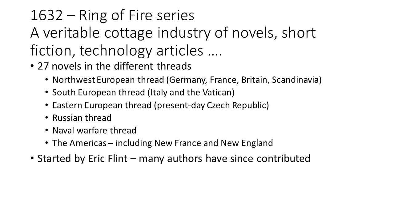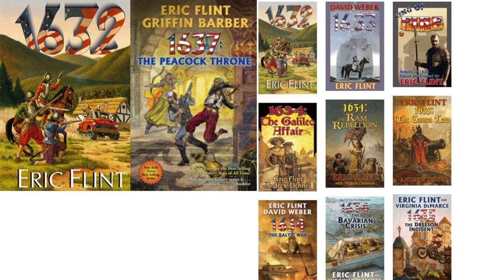 1632 series (aka Ring of Fire), started by Eric Flint; expanded into a shared universe with many contributors, many novels, much short fiction. Their online magazine also features non-fiction articles and discussions of how to adapt 21st century technology to the 17th century. And it’s still going strong.