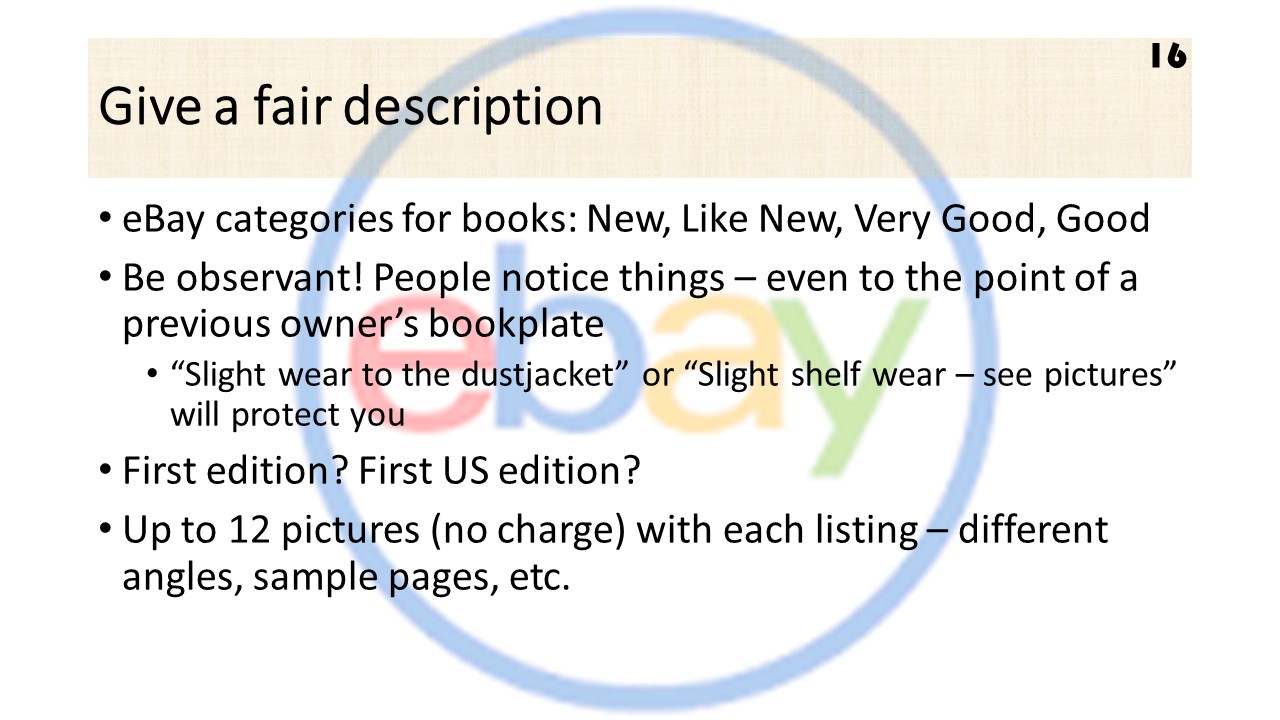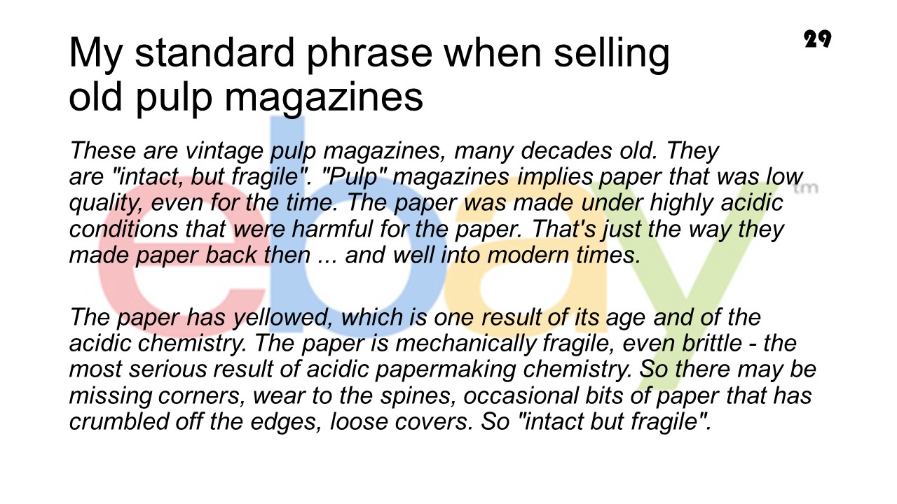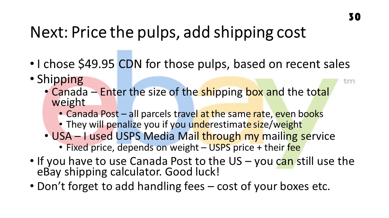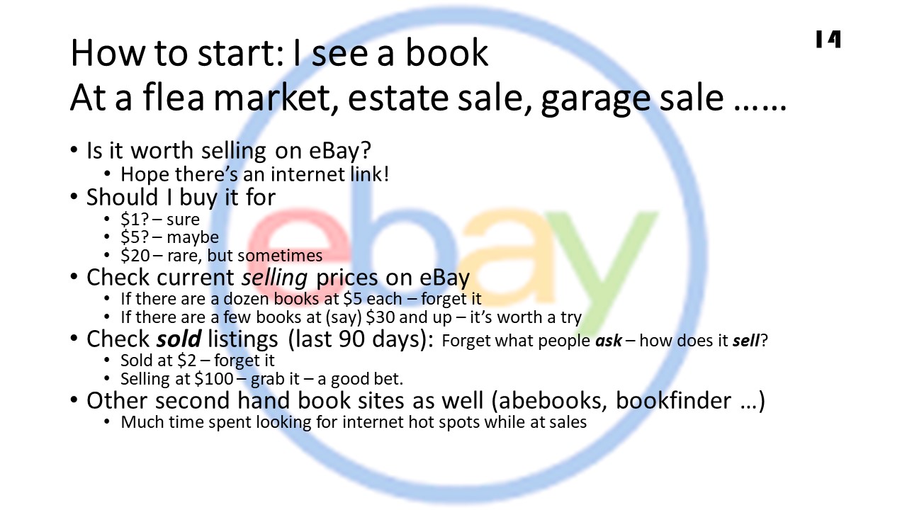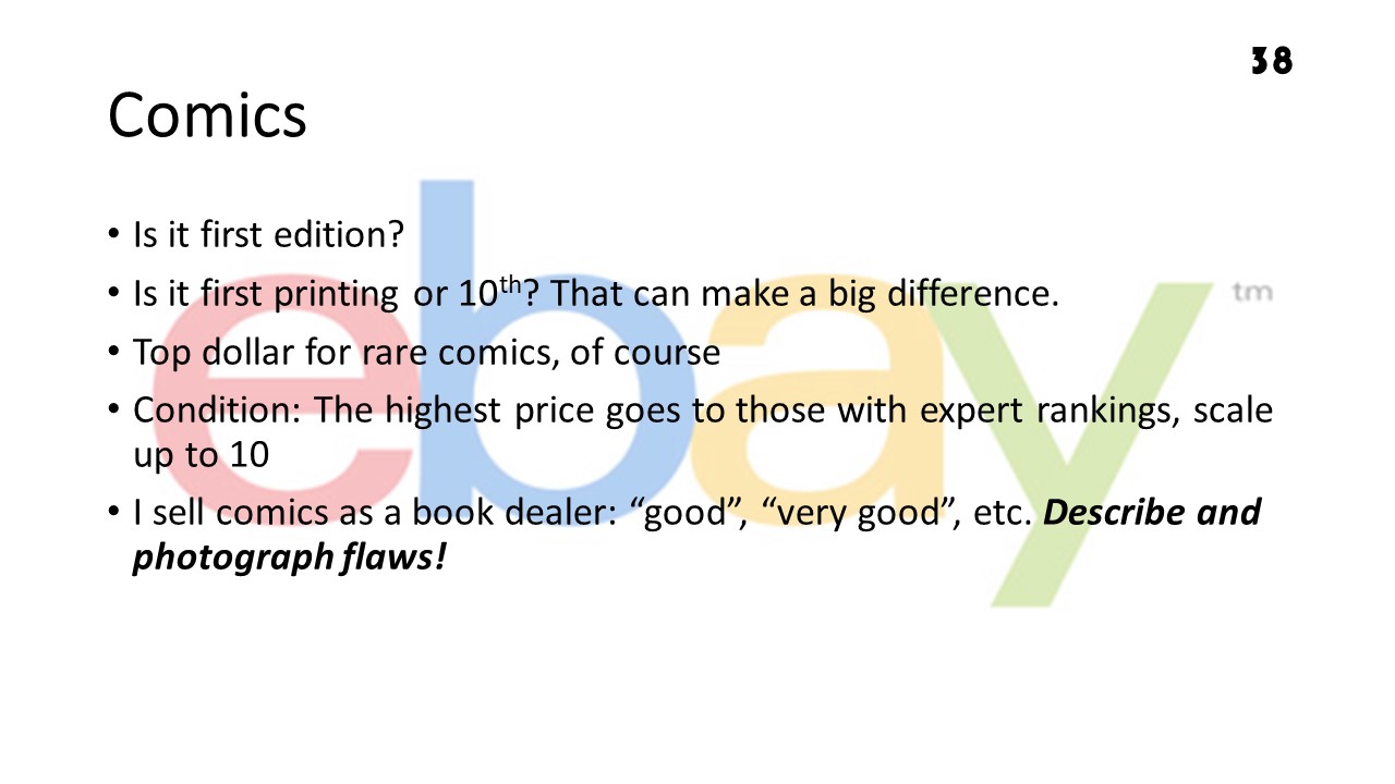 This panel discussion gives an introduction to sales on eBay, including the trials and tribulations of finding material, how to price it, how to ship it, and how to deal with feedback. Yes, and the taxman may cometh as well.