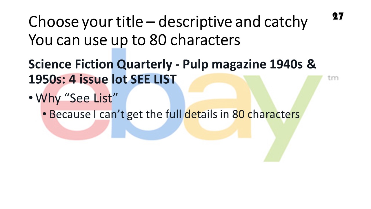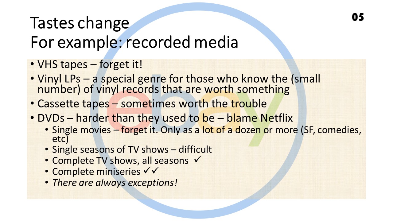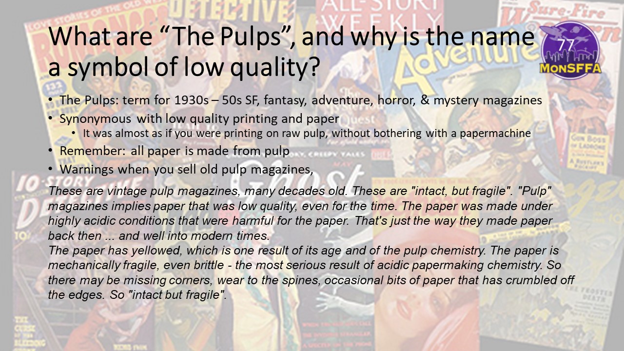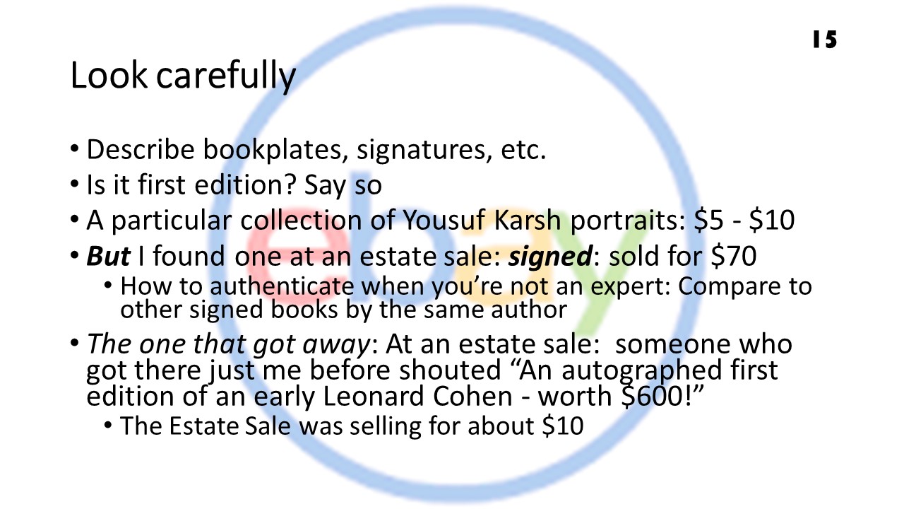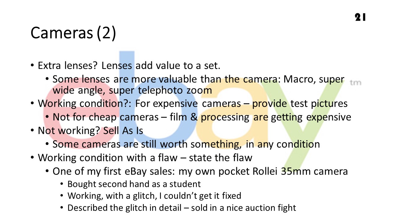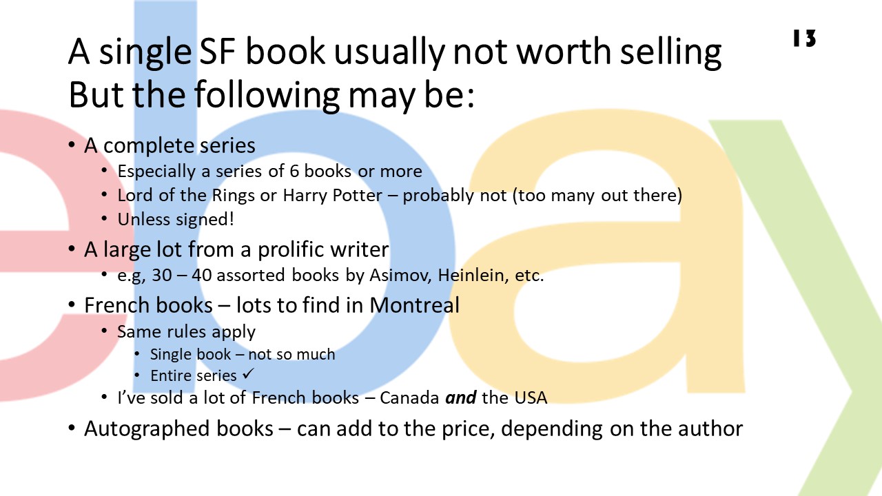 This panel discussion gives an introduction to sales on eBay, including the trials and tribulations of finding material, how to price it, how to ship it, and how to deal with feedback. Yes, and the taxman may cometh as well.