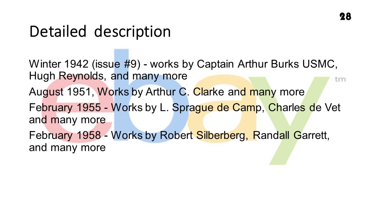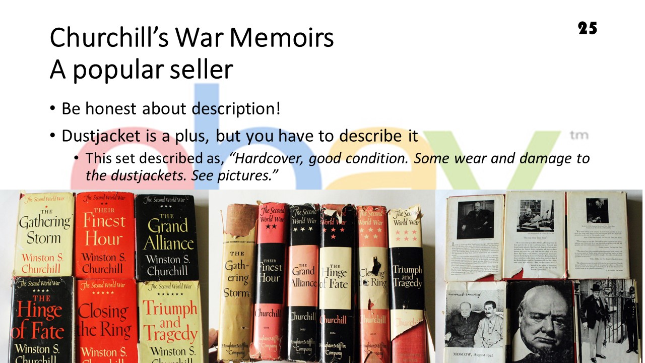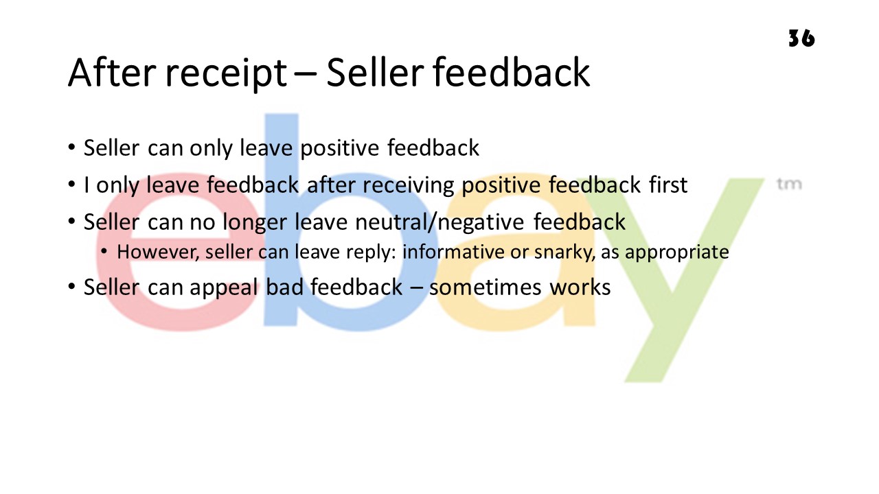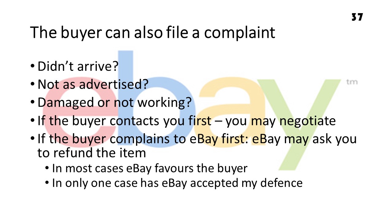 Others are invited to contribute their experiences on eBay, on other internet sales sites, or on their own web sites.