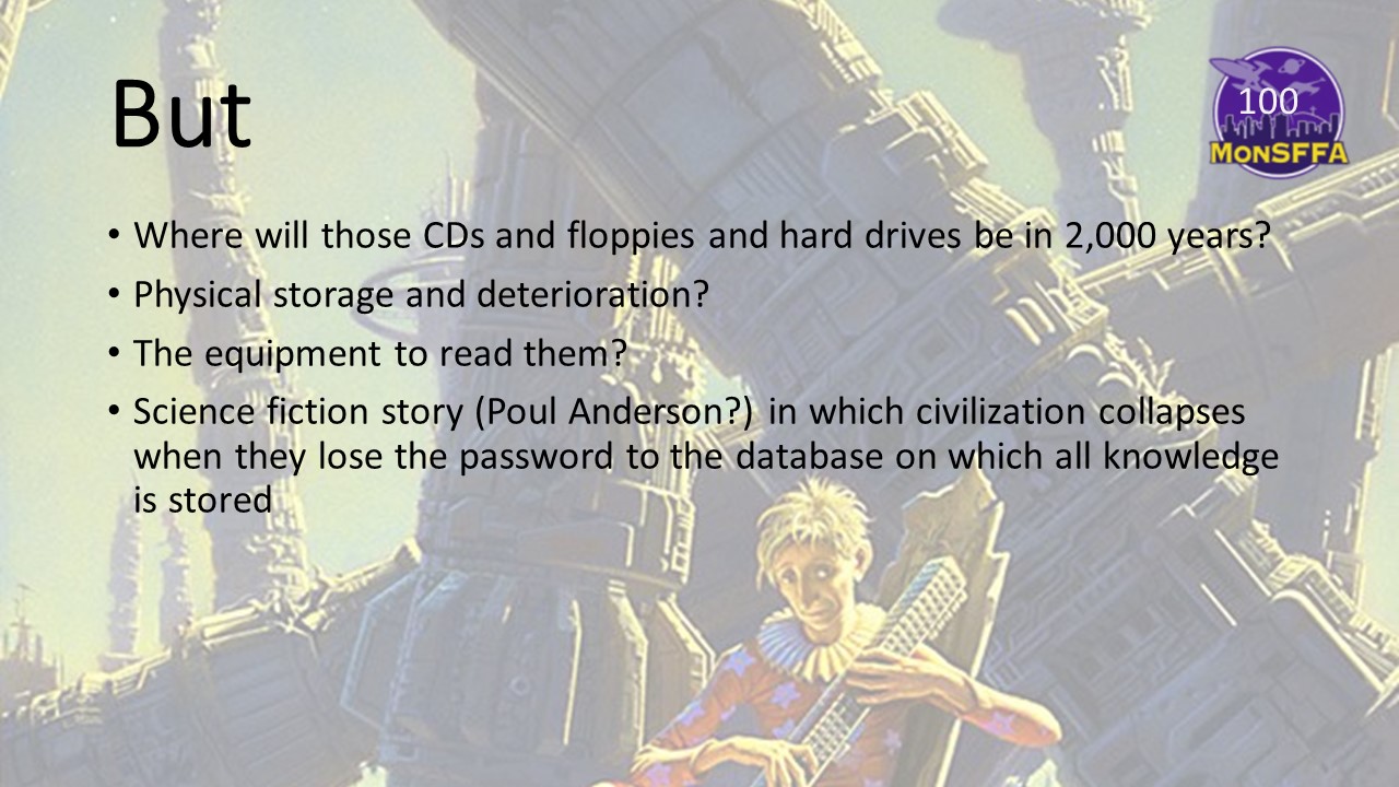 Where will our thoughts be a century from now? A millennium from now? Beyond that? Will our digital media fall apart faster than a pulp science fiction magazine in the hot sun?