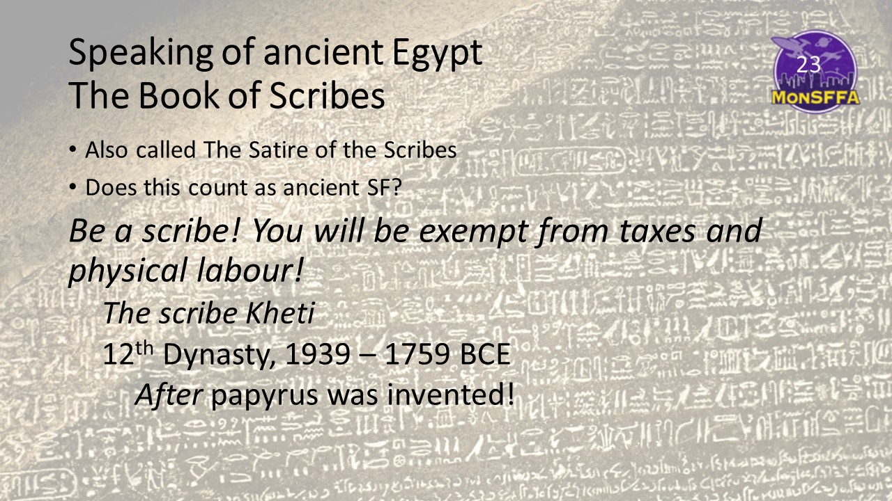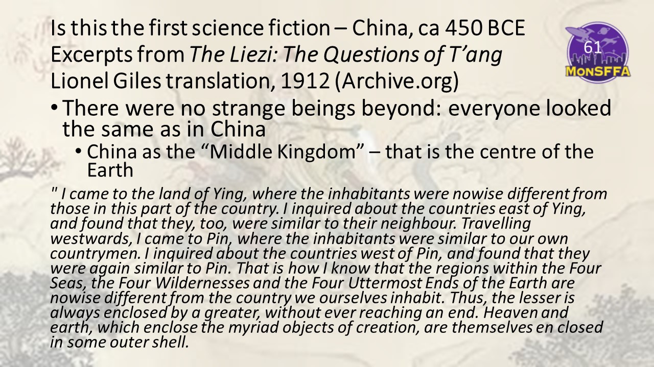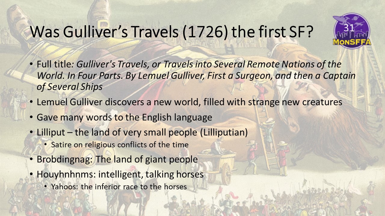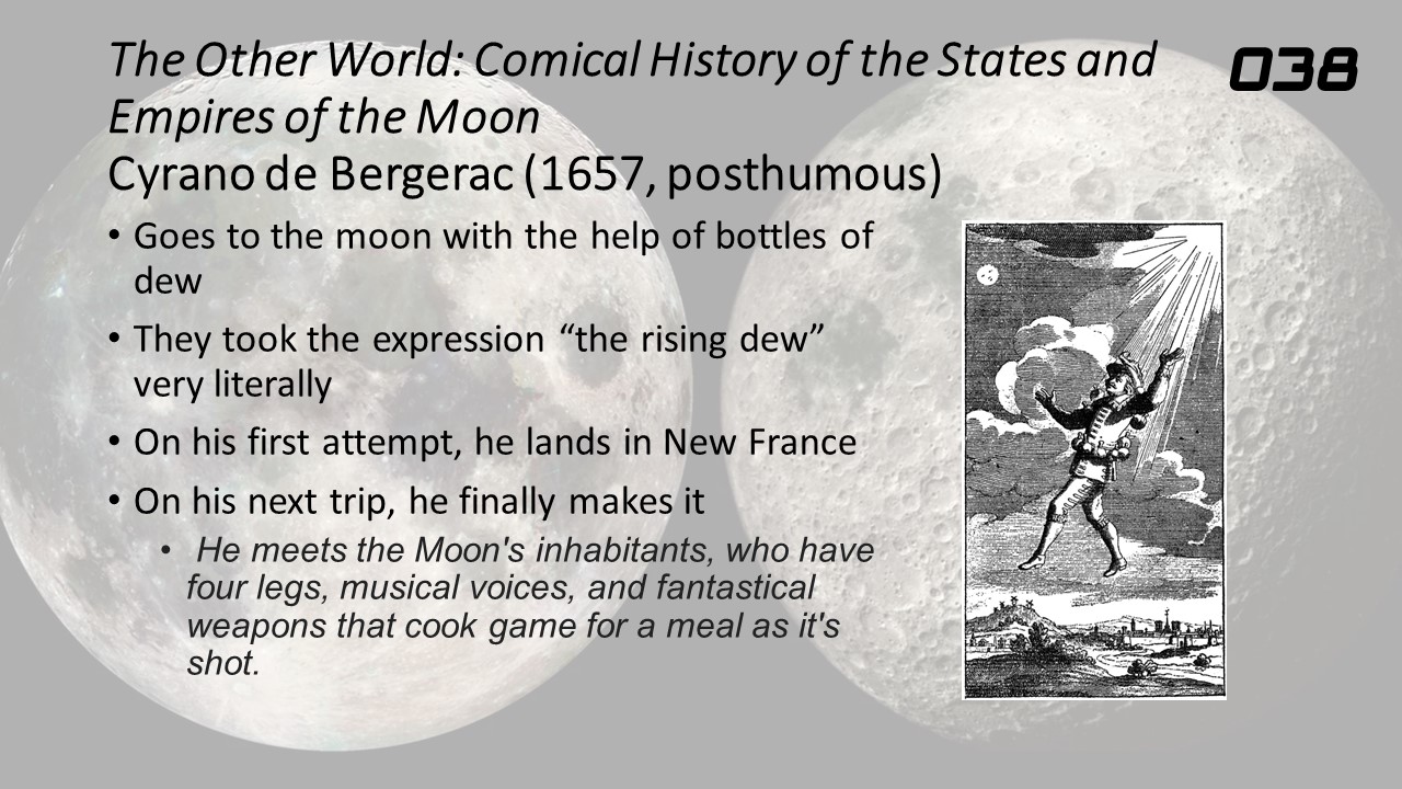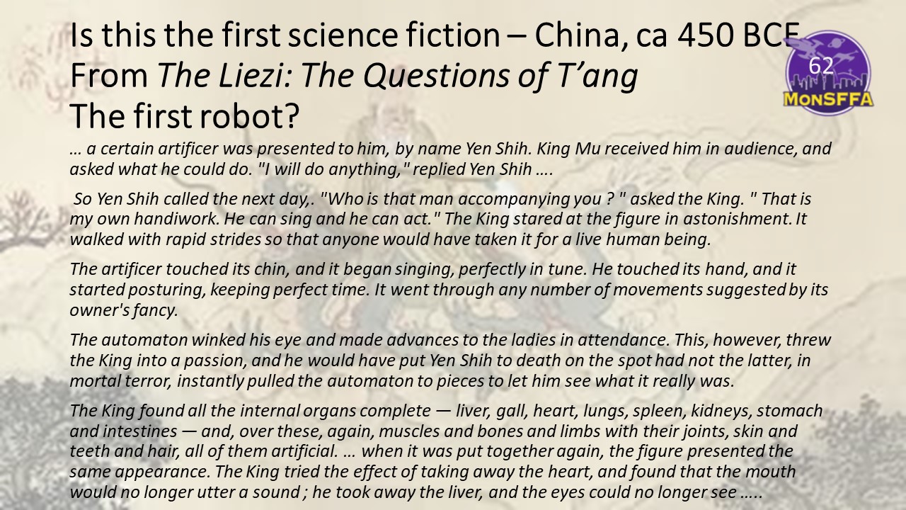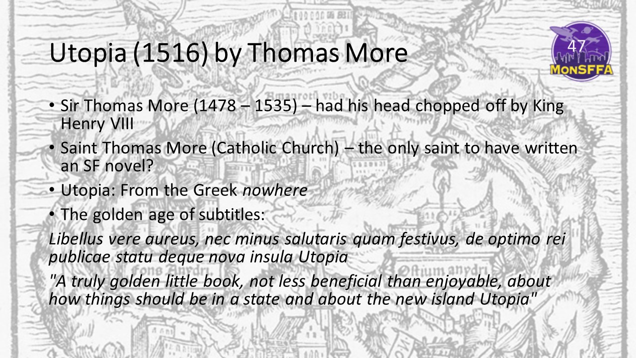 SCIENCE FICTION BEFORE IT WAS CALLED SCIENCE FICTION—We look at works of proto-SF. Tales of travel to other worlds, of alien beings and robots, and of interplanetary war date back decades and centuries prior to the publication of Mary Shelley’s Frankenstein, often cited as the first true science fiction story. Well before the term “science fiction” was coined, works such as Johanne Kepler’s Somnium and Lucian of Samosata’s satire True History included elements of what, today, we define as SF! We’ll examine these and other works of science fiction before it was called science fiction.