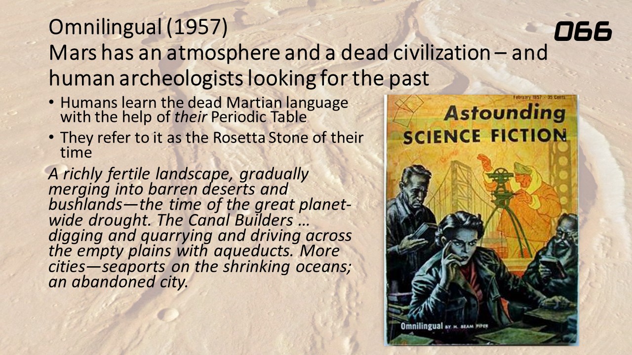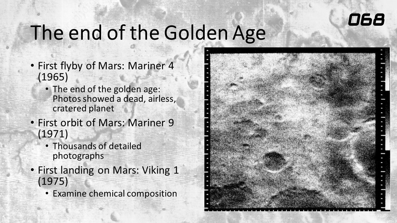 Then, science had its little say. Starting in the early 1960s, the first interplanetary probes knocked down the tropes of science fiction. Or as T.H. Huxley (1825 – 1895) put it: “The great tragedy of Science is the slaying of a beautiful hypothesis by an ugly fact.”