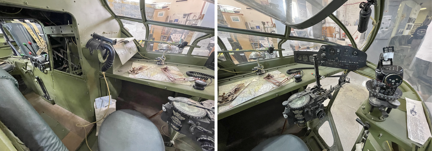 Angle forward, looking into cockpit and nose compartmentReverse angle, from nose compartment looking into cockpitCloser views, nose compartmentCloser views, cockpit