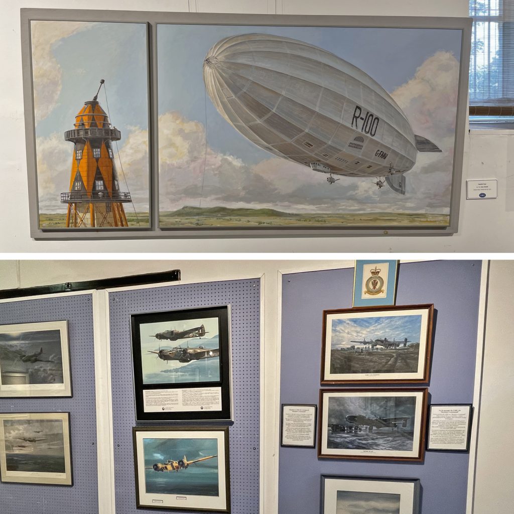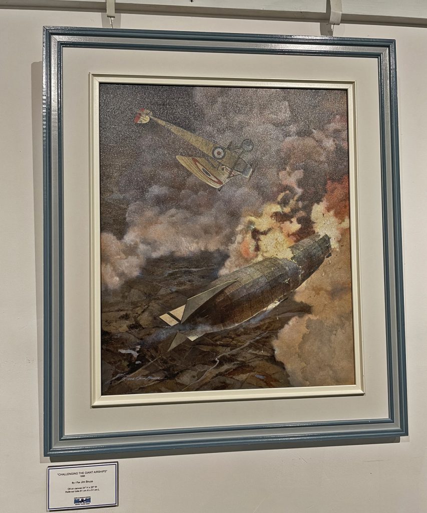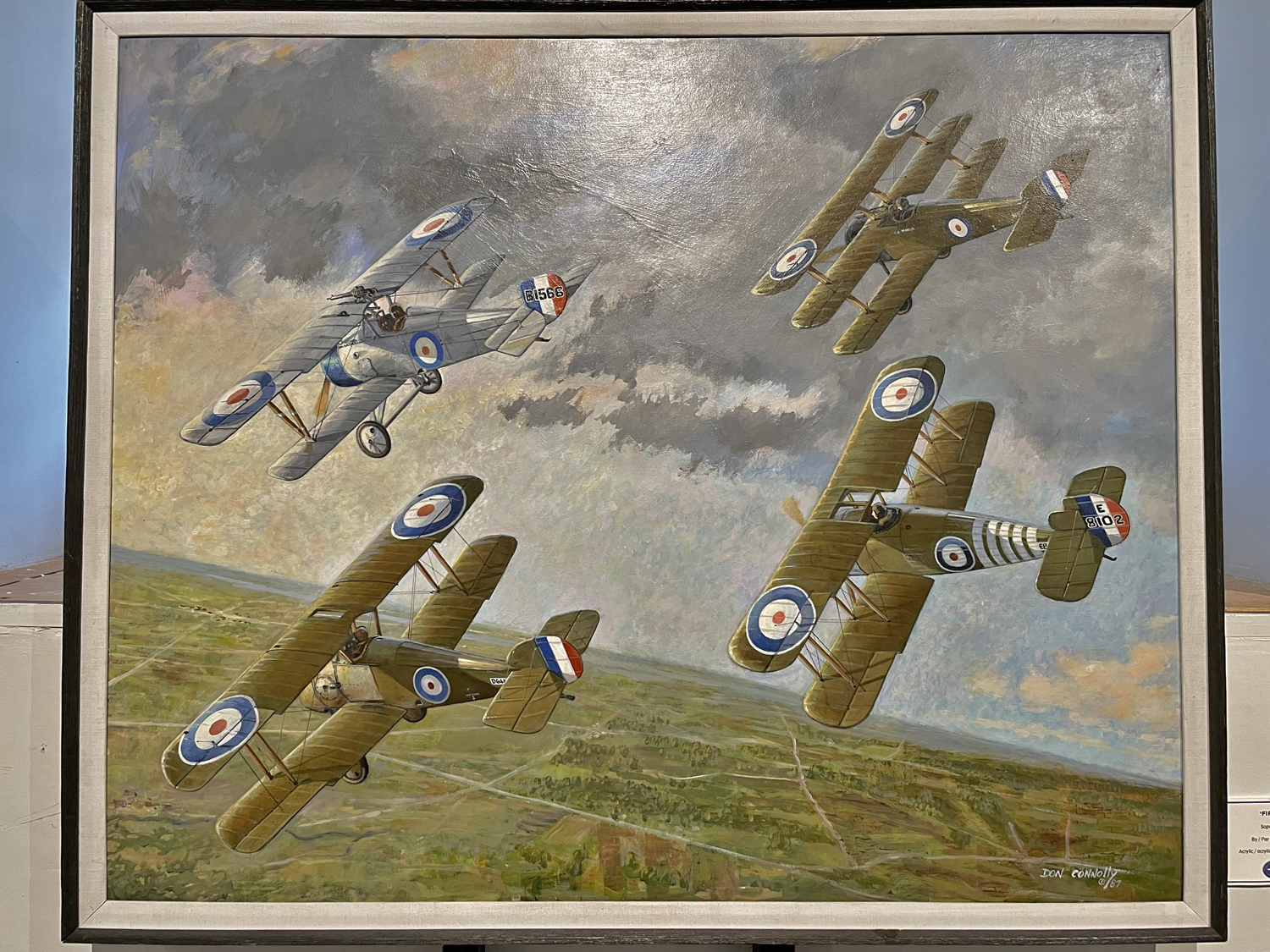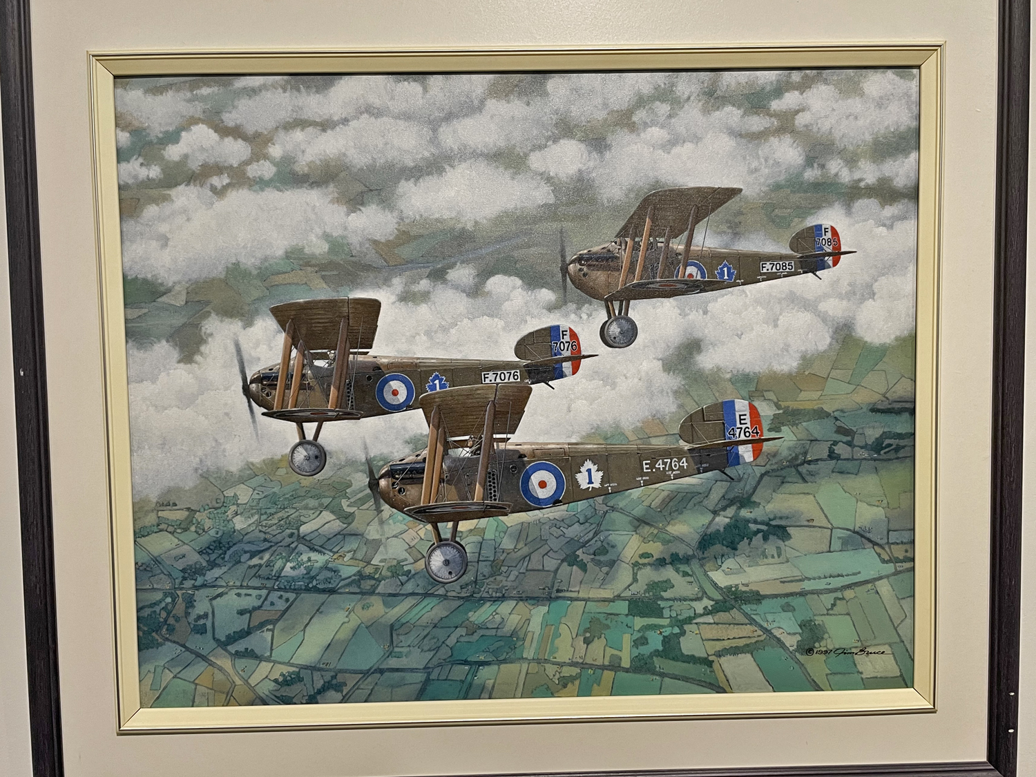 Last, but certainly not least, an exquisite collection of aviation art was hung in the museum’s gallery, including a stained-glass piece that drew the attention of MonSFFA president Cathy Palmer-Lister, whose hobbies include the fashioning of such works. Featured painters include Jim Bruce and Don Connelly.