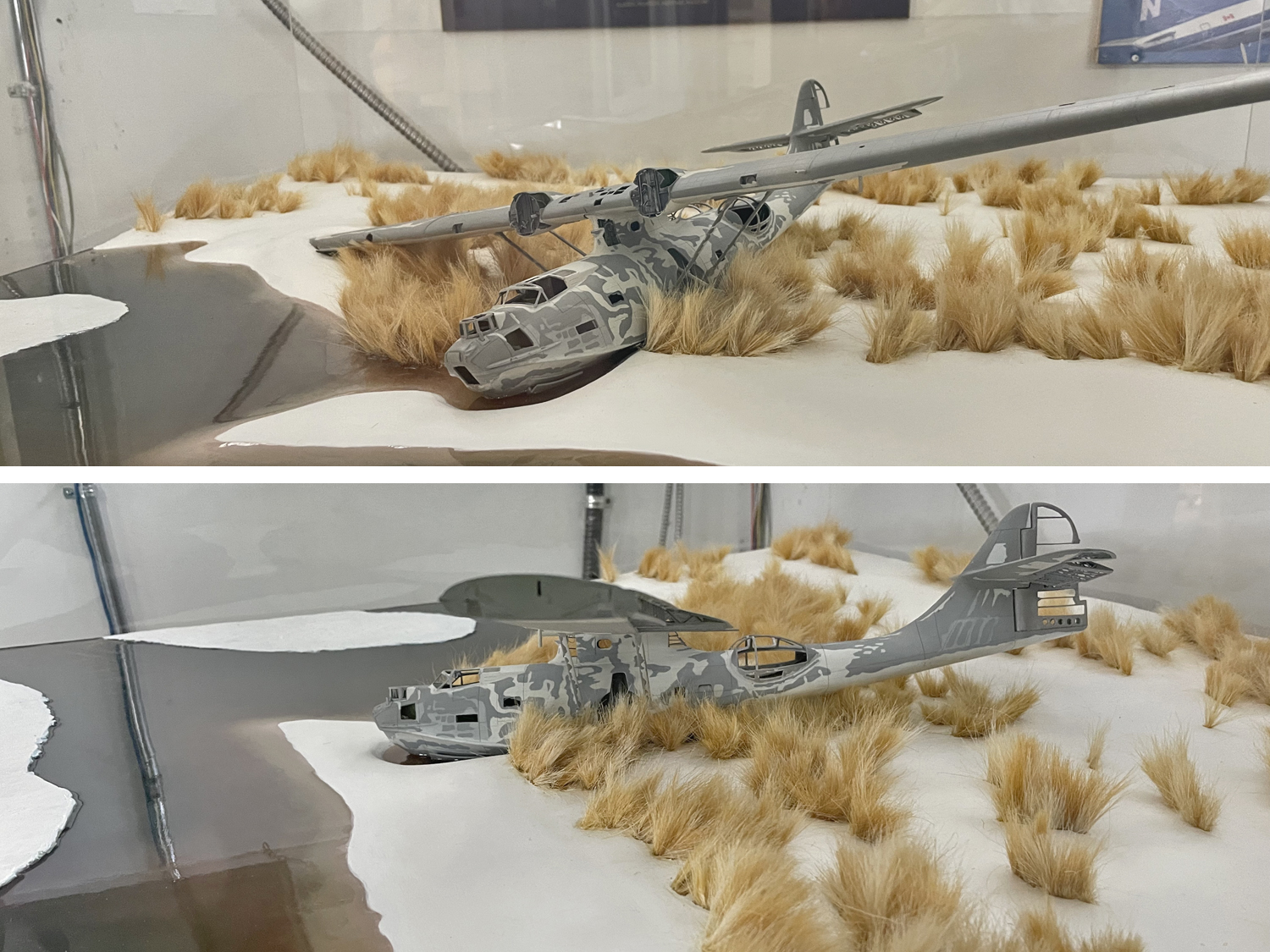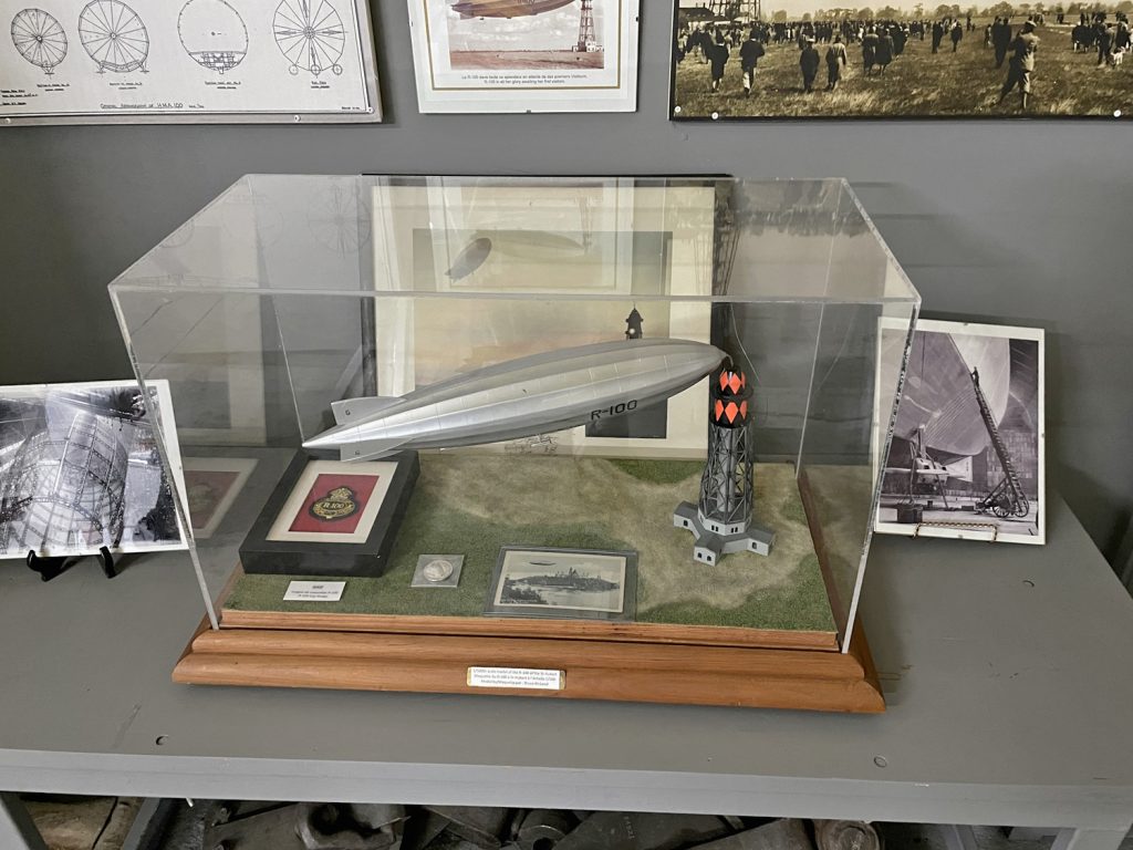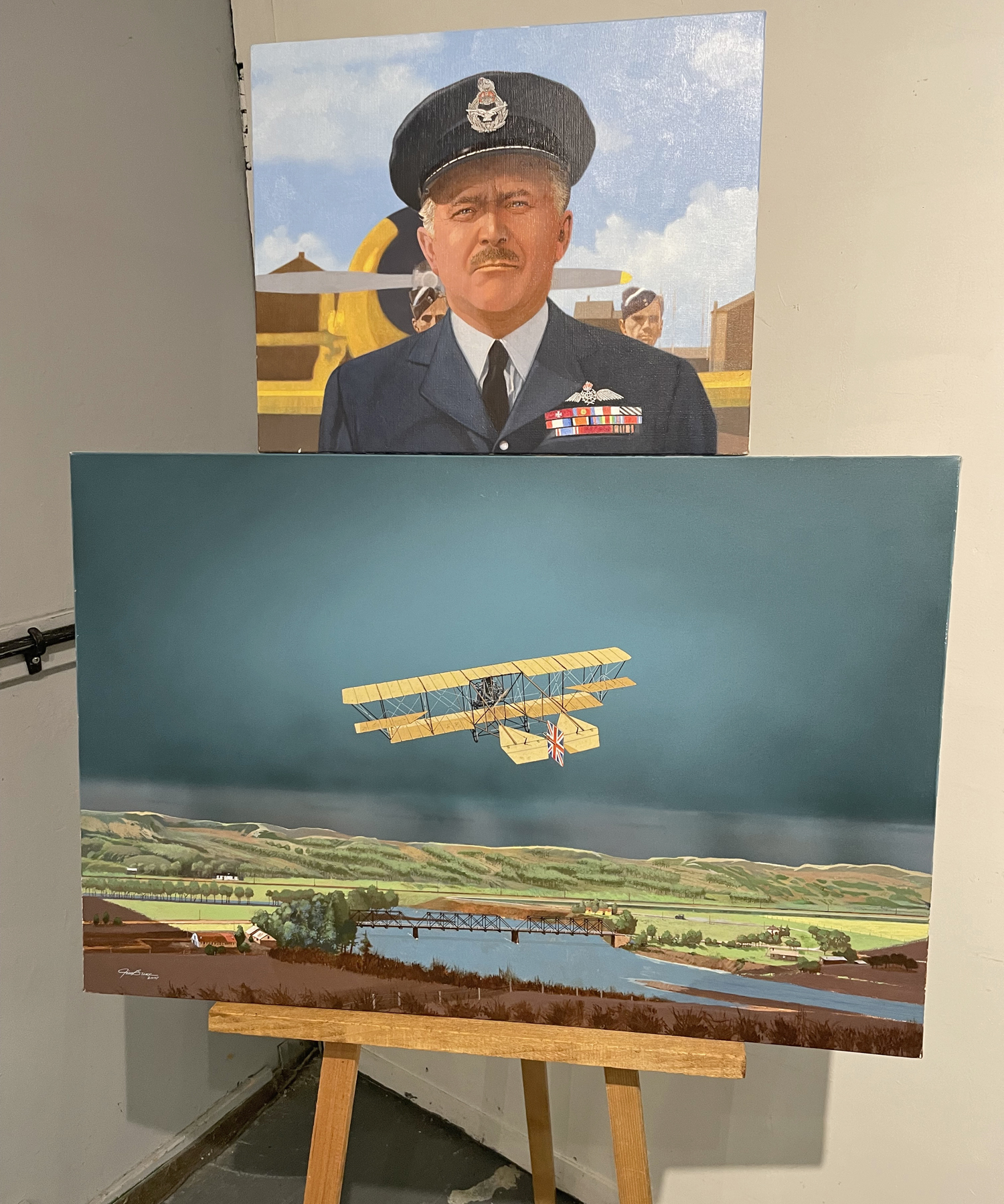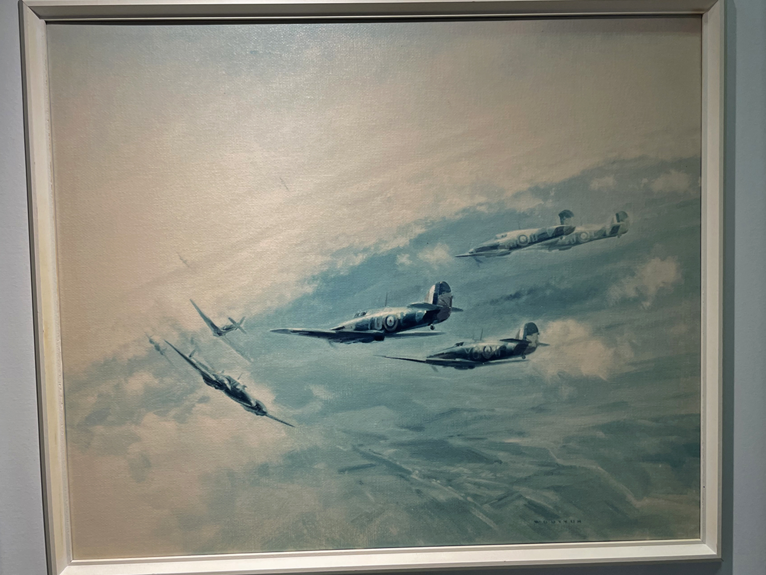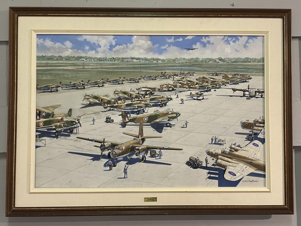 Last, but certainly not least, an exquisite collection of aviation art was hung in the museum’s gallery, including a stained-glass piece that drew the attention of MonSFFA president Cathy Palmer-Lister, whose hobbies include the fashioning of such works. Featured painters include Jim Bruce and Don Connelly.
