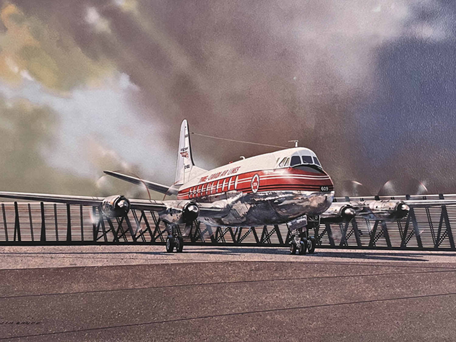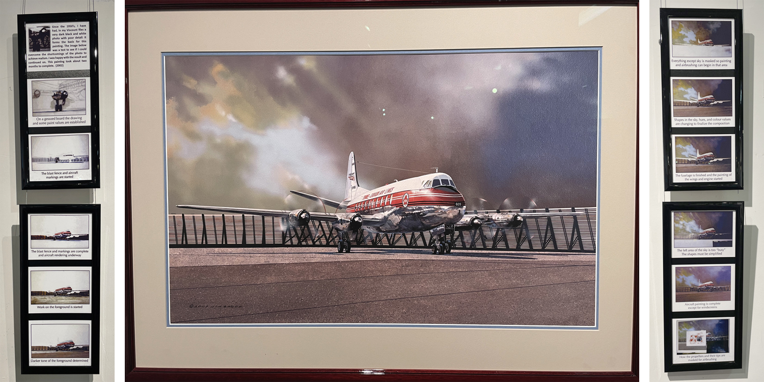 Artist Jim Bruce included photos showing the step-by-step creation of his airbrush painting depicting a TCA Vickers Viscount airliner.