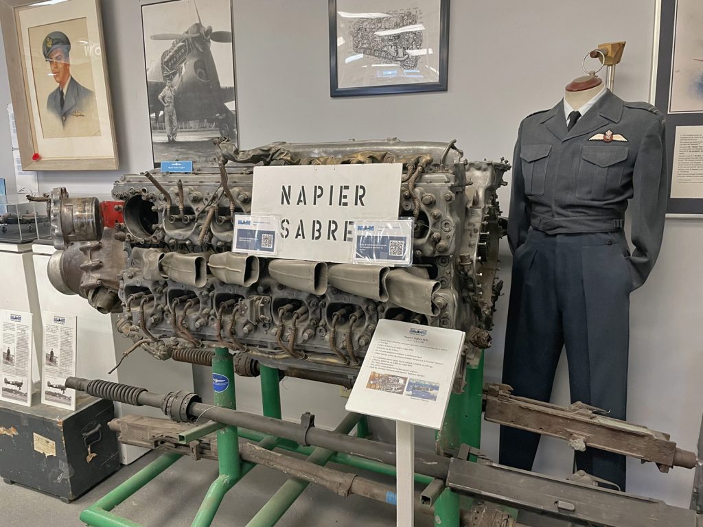 On display with the finely finished planes on show in the museum’s second-floor main hall were various period photographs, historical documents, associated artifacts and equipment, engines, flight suits, and some of the tools employed to bring these old birds back to life.