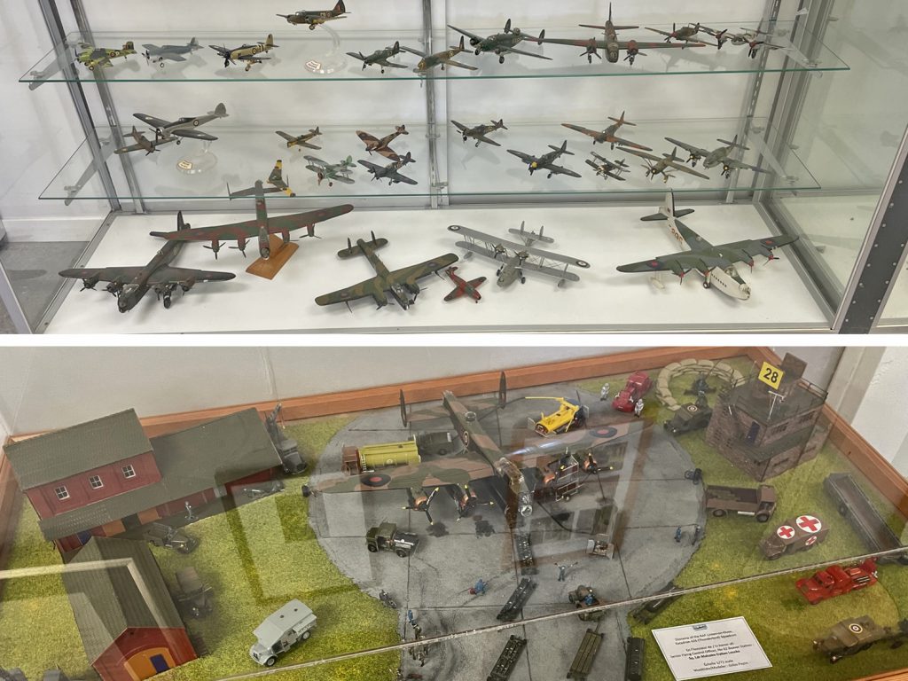 Numerous large-scale models of aircraft hung from the ceiling above the actual, full-scale planes. Model aircraft, in fact, could be found throughout the museum, presented either individually or as components of a skillfully crafted diorama.