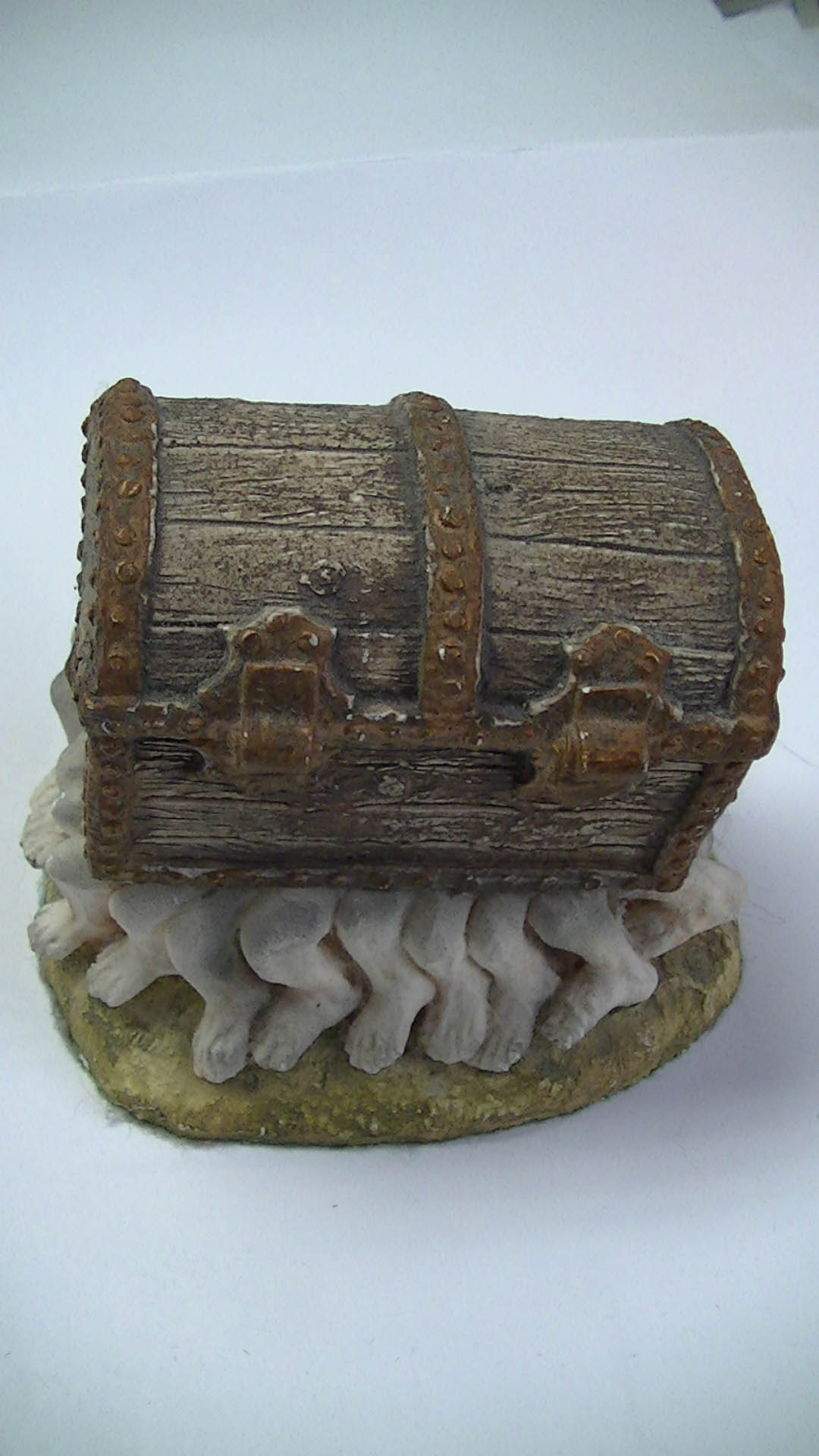 DiscWorld, the Luggage, ClareCraft, Woolpit Suffolk sticker under base, from Sylvain’s legacy