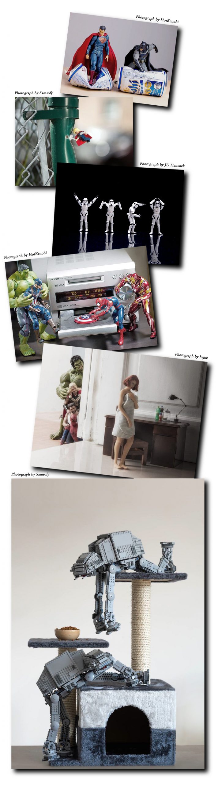 Another related area of artistic expression that has quickly grown in popularity is the photography of toys, action figures, and scale models. Some of the artists involved in this movement note that there’s a satisfying feeling of nostalgia in returning to childhood to make art that comments on modern society, or simply yields a good visual joke. No attempt is made to mask the fact that the subjects are toys; their plastic sheen and visible articulated joints are all part of the charm. And there’s quite frequently a sci-fi element to these snapshots in that toy stores are stocked with so many toys tied to a sci-fi film or television franchise. Some expert shutterbugs use photo-editing software to enhance certain aspects of their snaps, or combine elements from several shots to produce a single image. Others prefer to work entirely in-camera, abstaining from any computer-aided tweaking.