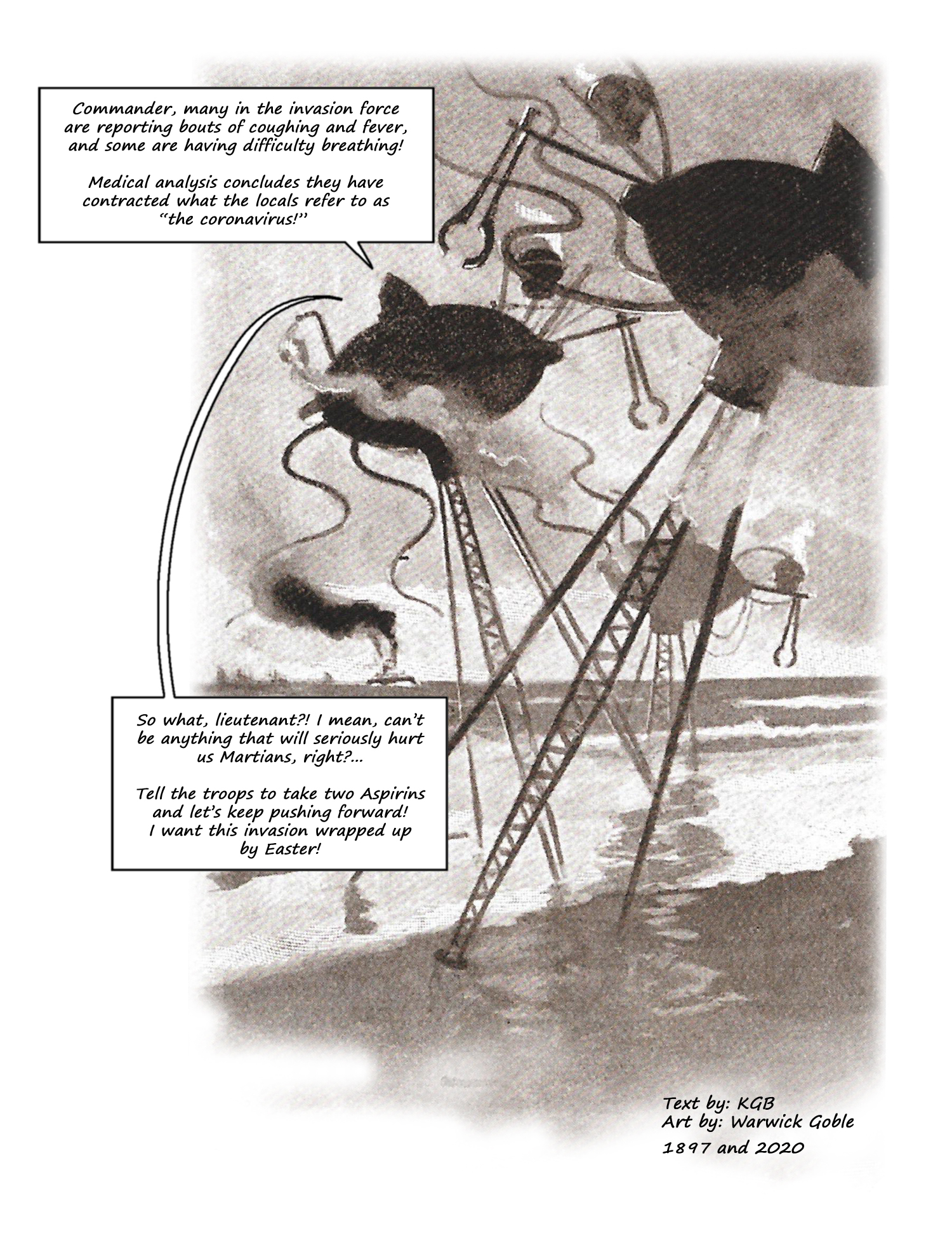 We now find ourselves quarantined in our homes as a measure calculated to fight the rapid spread of this deadly coronavirus. And so we are posting on the club’s Web site, at this our hour—1:00PM, the usual start-time of our meetings—the content below to help you all pass the time. Concurrently, on the club’s Facebook page (www.facebook.com/MonSFFA), you will find a special (and timely!) online presentation on “SF/F’s Plagues and Diseases” courtesy MonSFFA’s own Sylvain St-Pierre. When you’ve finished perusing this post, hop over and check it out!