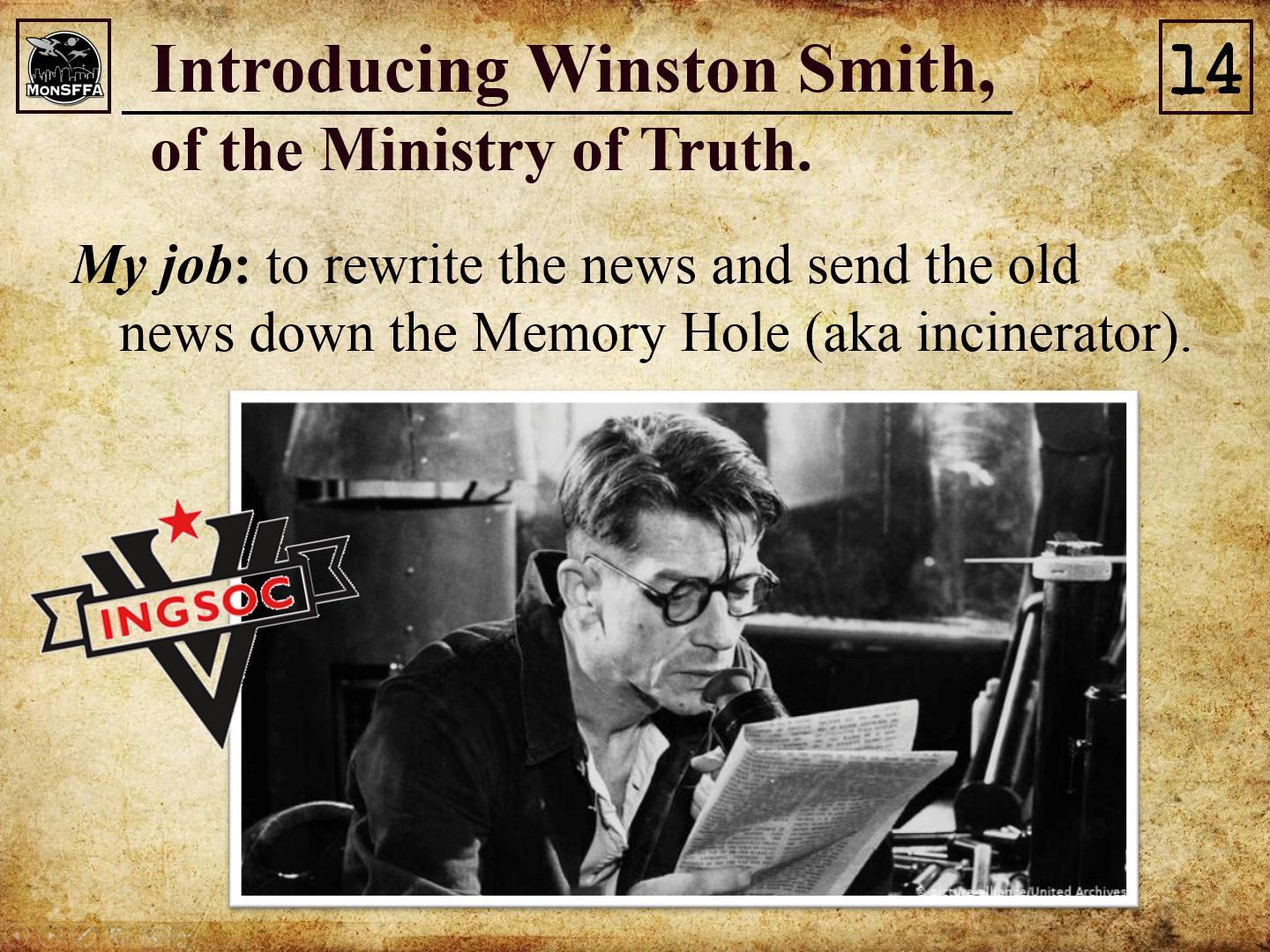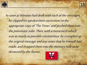 15b – John Hurt as Winston Smith in 1984 – rewriting the news for he Ministry of Truth.