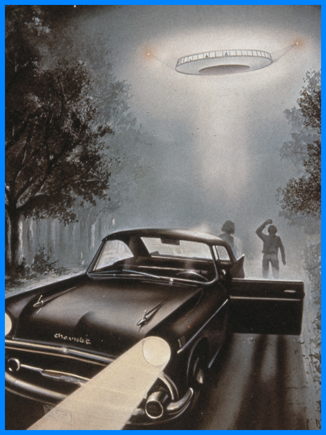 Some theorists take another tact, going so far as to submit that government conspirators enlisted Hollywood’s help in carrying out a wide-reaching and continuing disinformation campaign. Fanciful fairy tales about space aliens in movie theatres and on TV were designed to steer the public afar of the facts concerning UFOs—that they’re all fake, a manufactured decoy to divert attention away from the military’s super-secret advanced-weapons development programs.