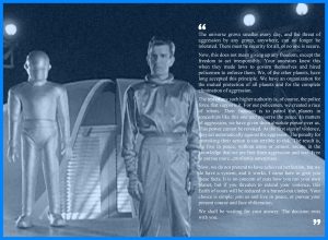 The opening sequence quite realistically depicts the military’s response to, and the global press coverage of, the arrival of Klaatu’s spaceship, which circles the planet before alighting in a public park in the American capital.