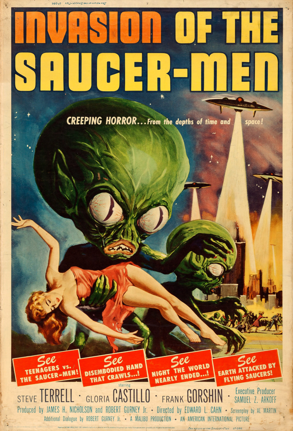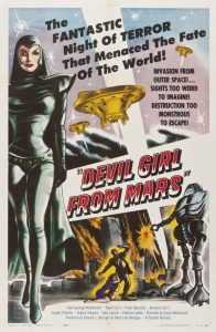 Taking note of the public’s fascination with flying saucers, Hollywood jumped on the bandwagon with aforementioned films like The Day the Earth Stood Still and Earth vs. the Flying Saucers, as well as Invasion of the Saucer Men (1957), Teenagers from Outer Space (1959), the much-derided Plan 9 from Outer Space (also 1959), and numerous others. British filmmakers, too, got in on the trend with such productions as Stranger from Venus and Devil Girl from Mars (both 1954).