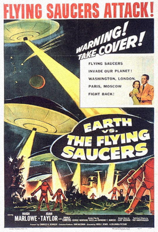 Quickly developed to cash in on the growing public interest in UFOs, the low-budget black-and-white film was loosely based on Major Donald Keyhoe’s book Flying Saucers From Outer Space (1953), which documented the many reports of saucer sightings making news in the wake of the Arnold sighting.