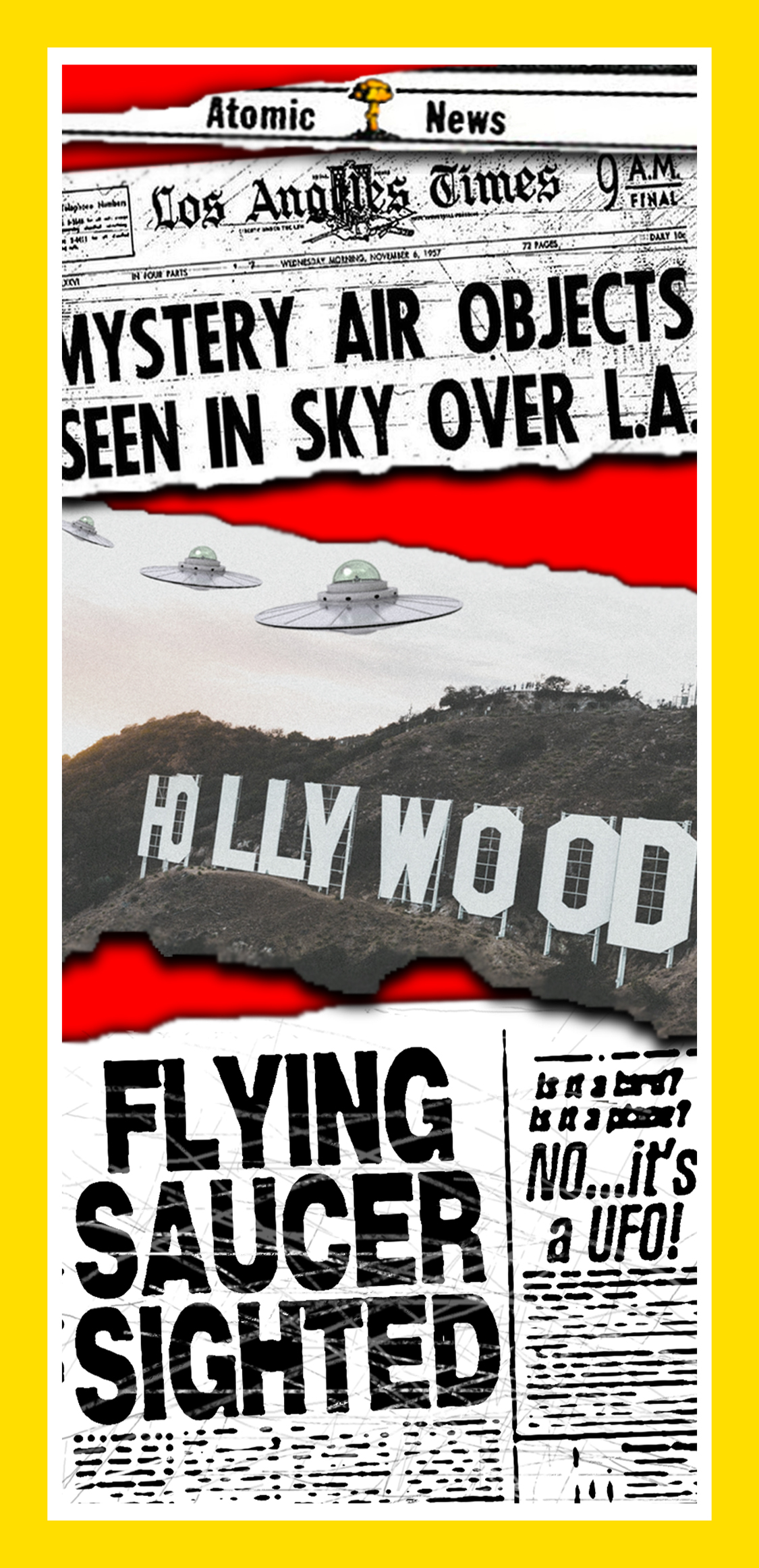 But Hollywood was quick to capitalize on the spaceships-from-another-world angle of the flying saucer craze set off by the first UAP incident of the Modern Age of UFOs, in which the witness hypothesized that what he had seen could well have been a formation of alien vessels from outer space!