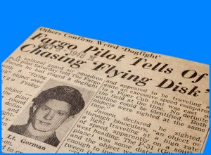 The Gorman Dogfight of October 1 saw North Dakota Air National Guard pilot George F. Gorman pursuing what he described as, simply, a blinking “ball of light” in the skies over Fargo. This UFO was apparently no more than 8 inches or so in diameter—the Foo Fighters of World War II are brought to mind. Gorman later added that the light would stop blinking and grow brighter when it accelerated.