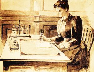 August 8, 1876: Thomas Edison received a U.S. patent for his “electric pen,” key component of a complete duplicating kit. The patent covered the pen, duplicating press, and accessories. A battery-powered hand-held motorized pen drove a reciprocating needle capable of making 50 perforations per second. Users would simple write or draw with this pen on a stencil, their scribblings reproduced as tiny holes in the template. The completed stencil was then placed atop a piece of paper resting on a flatbed press, and a roller used to squeeze ink through it onto the paper, thus duplicating what had been originally written or drawn. Edison claimed that up to 5000 copies could be made from one stencil. The process was a simple, inexpensive means of reproducing business, legal, financial, and other documents in small print runs. Edison marketed his duplicating system with advertisements in a circular that was produced using his very system! The “Electro-Autographic Press” was touted as “the only process yet invented whereby an unlimited number of impressions can be taken with rapidity from ordinary manuscript.” Another ad showing a couple embracing compared the process to a kiss. “Every succeeding impression is as good as the first,” read the ad copy. “Endorsed by everyone who has tried it—only a gentle pressure used.” Early on, Edison sold the rights to manufacture and market his system and eventually, the A. B. Dick Company acquired the patent and refined the invention, creating the mimeograph, which was marketed, with his permission, as “Edison’s Mimeograph.” This apparatus, along with spirit duplicators, or Ditto machines, and the gel-based Hectograph were used extensively in the early years of science fiction fandom to publish “fan magazines,” or “fanzines.” Photocopying technology largely supplanted these seminal home-printing methods by the 1970s.