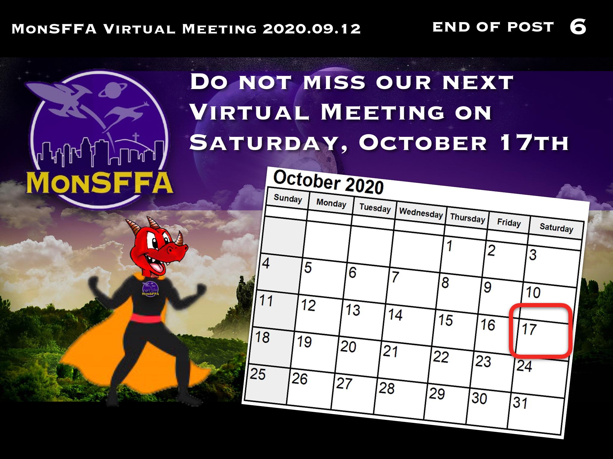This is post 6 of 6 today, and will close this afternoon’s virtual MonSFFA meeting. If you’re just now joining us, scroll back to today’s Post 1 of 6 to enjoy the whole meeting, start to finish.