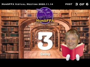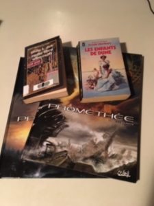 And from Marc Carrier: Salut Cathy, Quelques photos d’un partie de ma bibliothèque et de ce que je lis actuellement. A moins d’un changement je ne pense pas participer demain. A une autre fois sûrement. –Marc