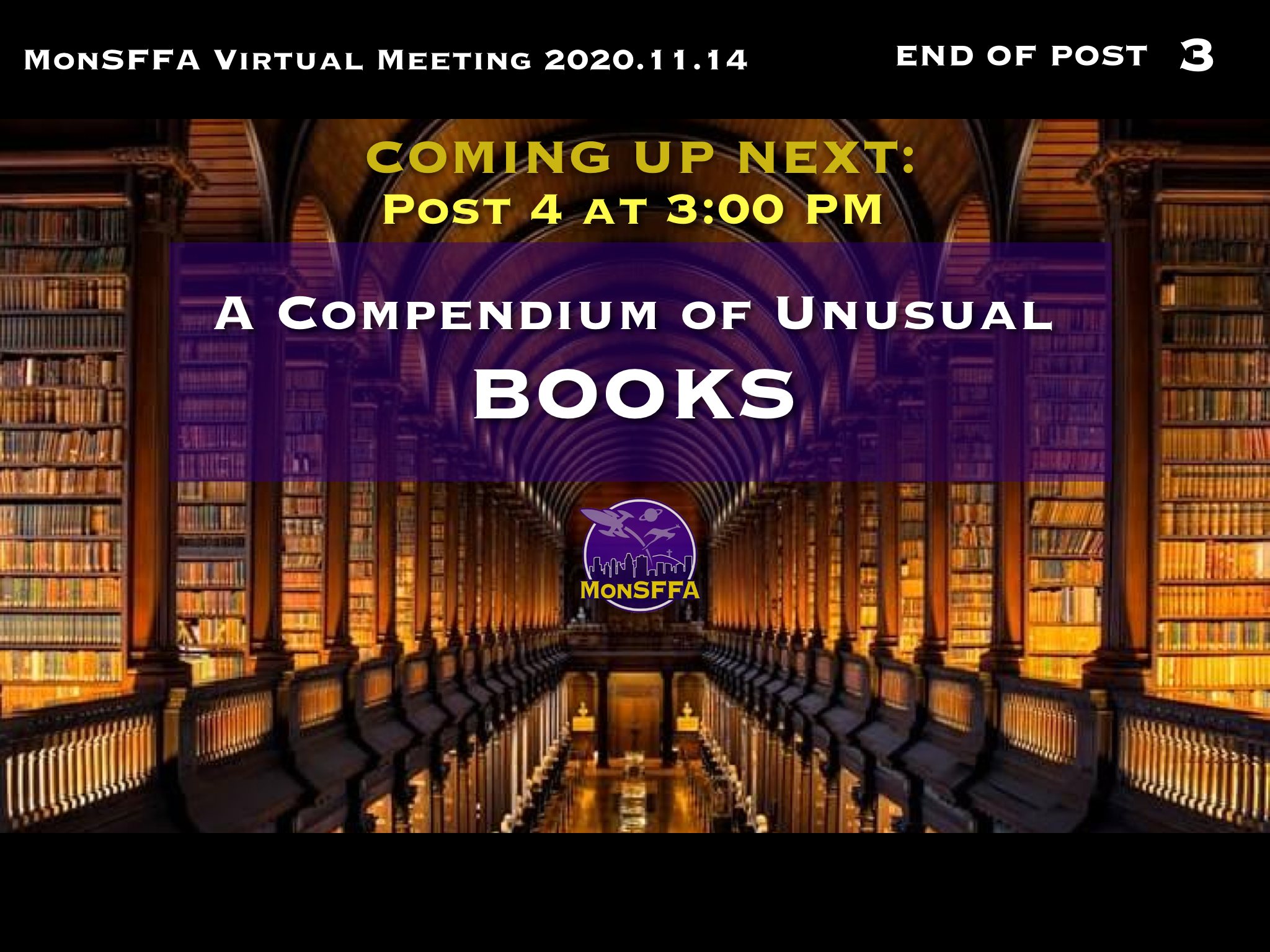 Get your drinks and snacks before the Zoom session which is about to begin. If you did not receive the link for Zoom, contact me NOW, because in a few minutes I will be too busy on the Zoom call and moderating comments.