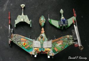 Dan Kenney had been retro-fitting one of his Klingon BoP. Work is still in progress. The heavier model needed a new base,