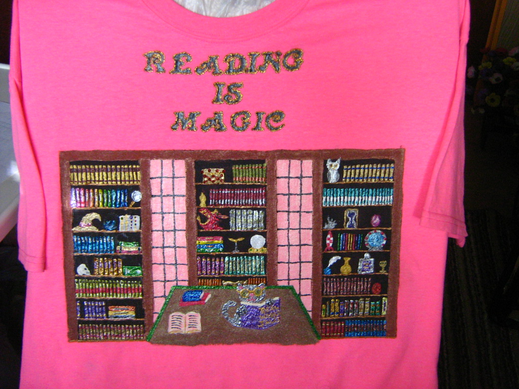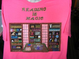 Josée has made a lovely tee-shirt, Reading is Magic!
