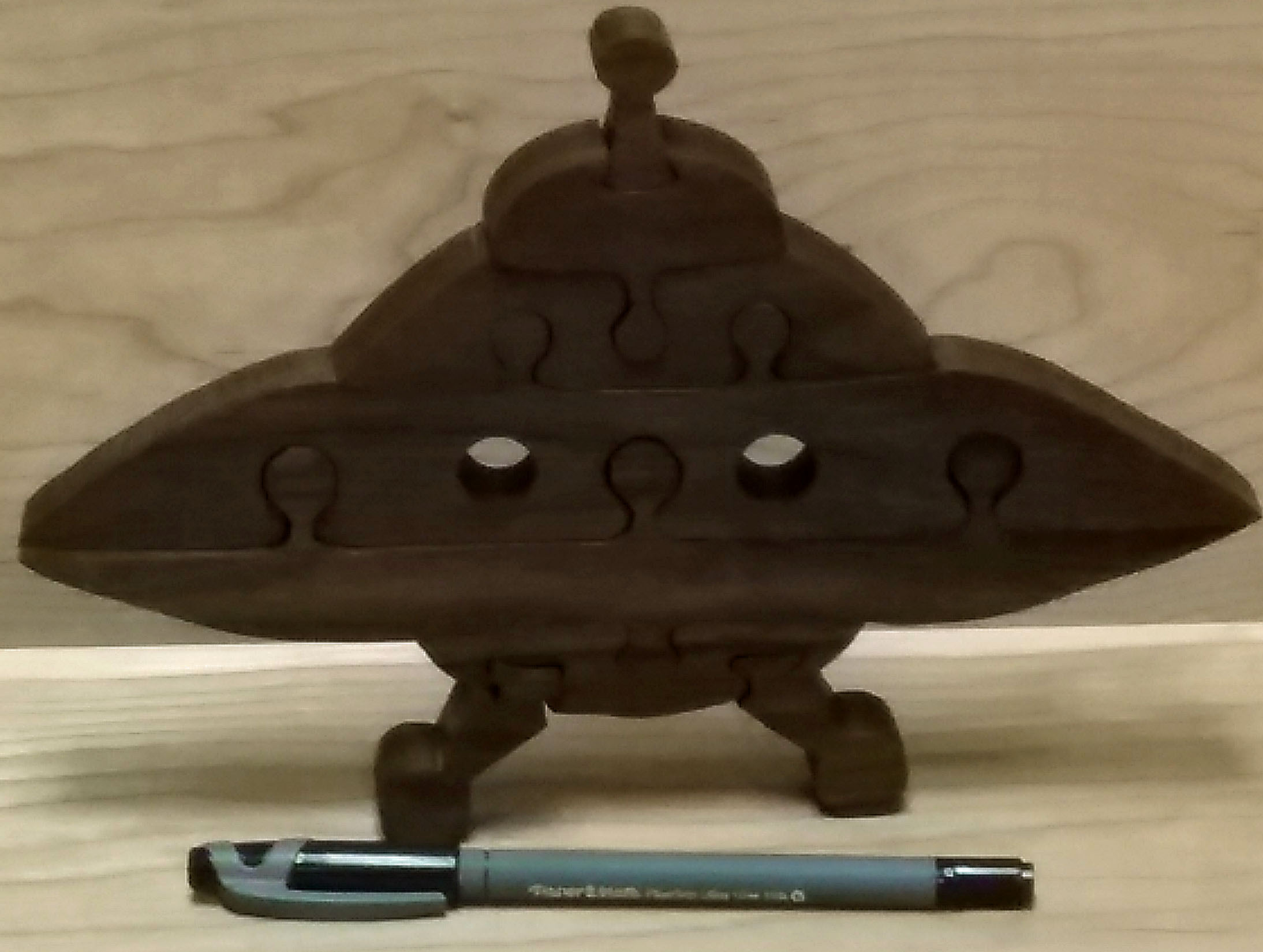 And for those who have not yet tired of my wooden puzzles, a UFO cut from Black Walnut, finished with Danish Oil.
