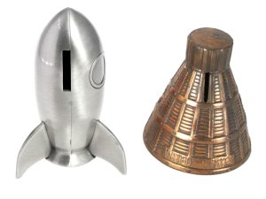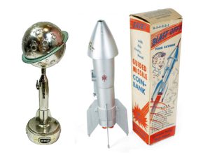Long story short: to date, the club has weathered well the financial hit wrought by the pandemic, but our treasure chest is not bottomless. It’s no random coincidence that the photographs accompanying this segment are of a collection of vintage space-themed coin banks! That’s to subtlety remind you that it takes bucks to maintain all of this Buck Rogers stuff!