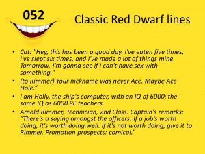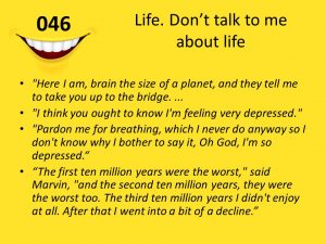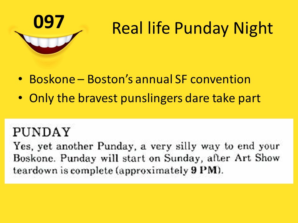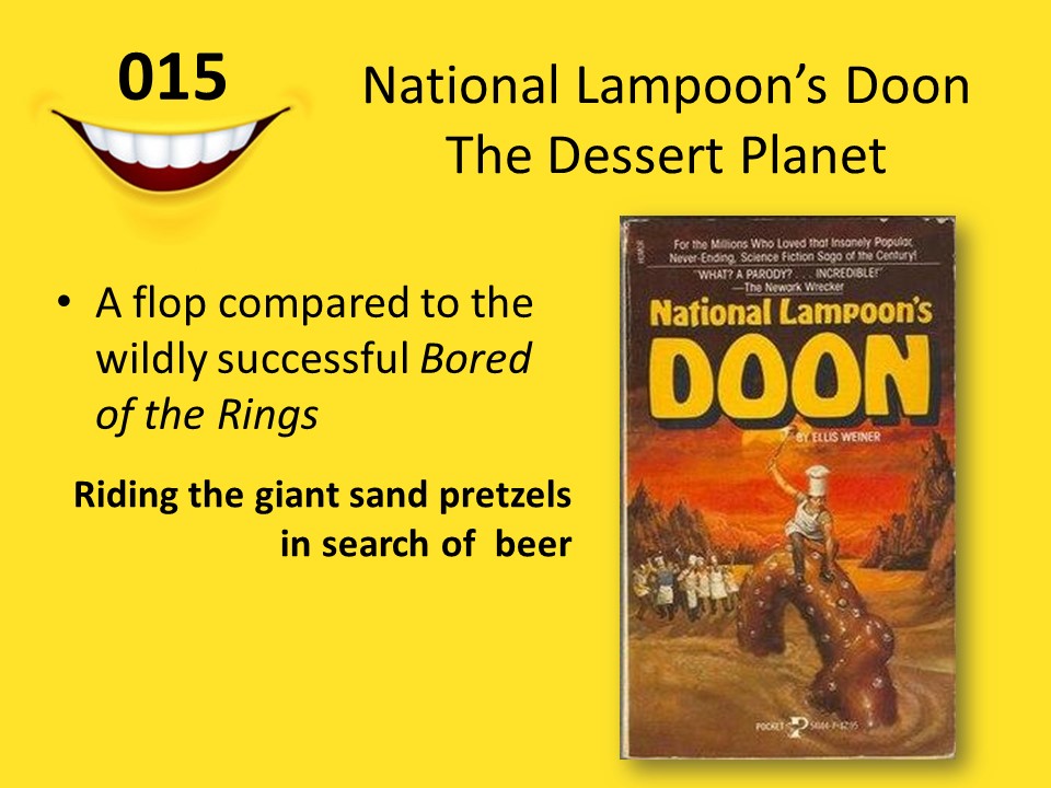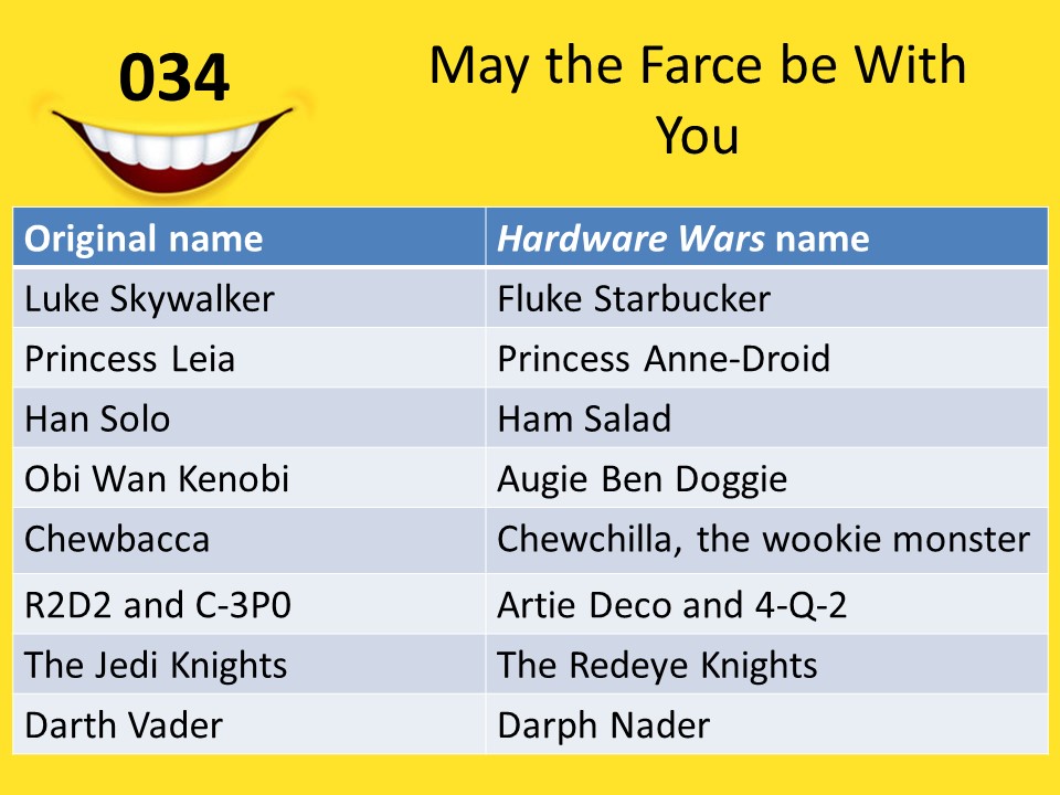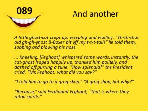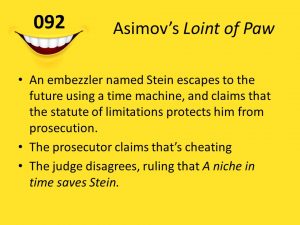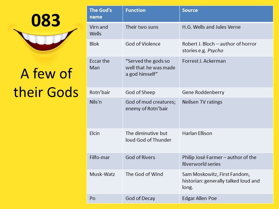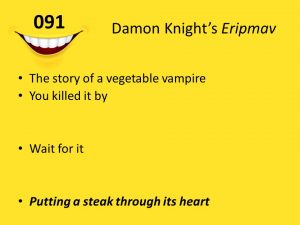 Science fiction and fantasy have a long history of taking themselves seriously. Very seriously. All too seriously. There have been successful SF and fantasy humourists of course. In recent months I talked about the fractured fantasies of Terry Pratchett and Tom Holt. However, humour in hard science fiction is rarer. A good parody is a joy to behold. There have been some good parodies …. And some not so good. In the next hour, I’ll give examples of humour, parodies, and puns in science fiction and fantasy. Professional warning: you will find some real science and some real science jokes here.
