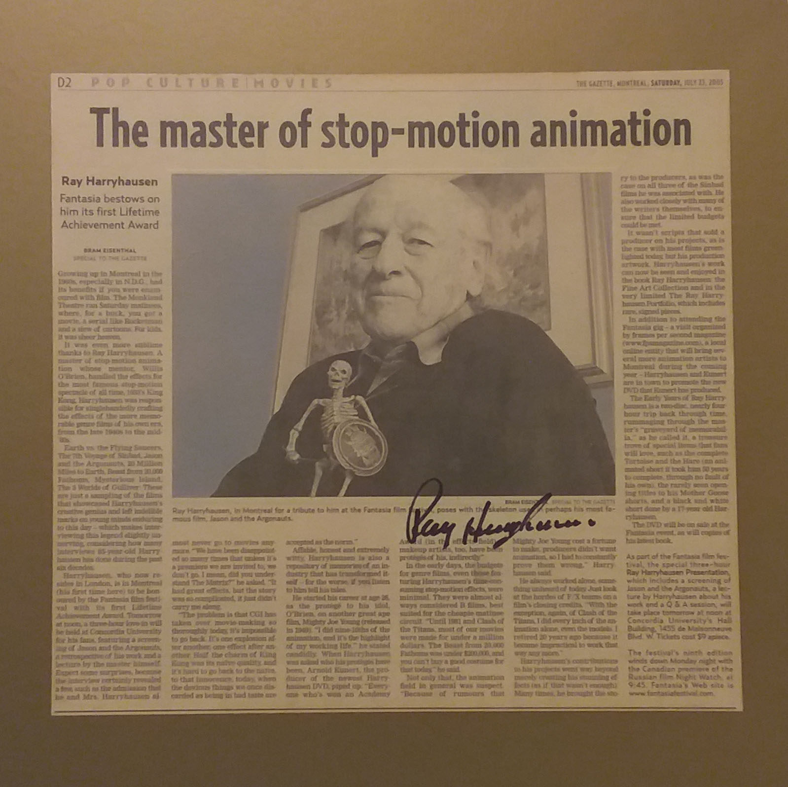 Keith managed to sneak in a Ray Harryhausen reference! (you owe the club a quarter, Keith), so we had a discussion about Harryhausen’s visit to Montreal, which led to talk about people who got his autograph, Here’s one from Lil Moir: