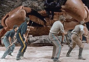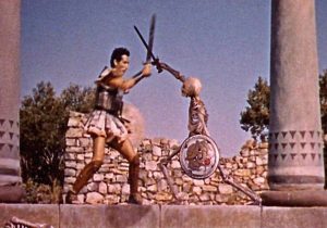 Joe—Mighty Joe Young (1949): Harryhausen worked with his mentor, Willis O’Brien, on this, his first feature film. He was O’Brien’s assistant and handled much of the animation. The movie won an Oscar for its visual effects.Rhedosaurus—The Beast from 20,000 Fathoms (1953): A fictional dinosaur conceived of for this film, which launched the giant-monster movie genre epitomized by the Japanese Gojira (Godzilla), the kaiju classic premiering the following year. Harryhausen’s good friend Ray Bradbury wrote the story that inspired this film.Brontosaurus—The Animal World (1956): Harryhausen and Willis O’Brien produced a short prehistoric sequence for this Irwin Allen documentary film, and their scenes proved the highlight of the picture!Sixtopus—It Came from Beneath the Sea (1955): A giant octopus that attacks San Francisco; dubbed the “sixtopus” because as a cost-saving measure, the animation model actually sported only six tentacles, not eight!Ymir—20 Million Miles to Earth (1957): An ever-rapidly growing Venusian creature come to Earth aboard a returning rocketship that crashes off the coast of Italy. While never actually so named in the film, the creature is generally referred to as “The Ymir.”Hydra—Jason and the Argonauts (1963): The mythical multi-headed monstrosity that serves as guardian of the Golden Fleece which Jason seeks.Harpie—Jason and the Argonauts (1963): These creatures torment the blind prophet Phineus, until Jason and his men intervene.Talos—Jason and the Argonauts (1963): The Argonauts land on the Isle of Bronze and this titanic statue comes to life and pursues them when Hercules can’t help but pilfer an item from a treasure trove.Children of the Hydra’s Teeth—Jason and the Argonauts (1963): A skeleton warrior first appeared in the first Sinbad film, and Harryhausen upped the ante in Argonauts, pitting seven skeletons against Jason and his men in a sequence of several minutes duration that took months to film!Giant Bird—Mysterious Island (1961): One of Captain Nemo’s giant animals, modeled after the prehistoric Phorusrhacos, colloquially, a Terror Bird.Giant Crab—Mysterious Island (1961): Another of Nemo’s genetically-engineered creatures. Harryhausen used the exoskeleton of a real crab to fashion this animation model.Pterodactyl—One Million Years, B. C. (1966): One of a number of types of prehistoric animals Harryhausen has included in his films, in this instance, the famous Raquel Welsh flick.Archelon—One Million Years, B.C. (1966): A giant turtle which menaces cave girl Raquel and her people!