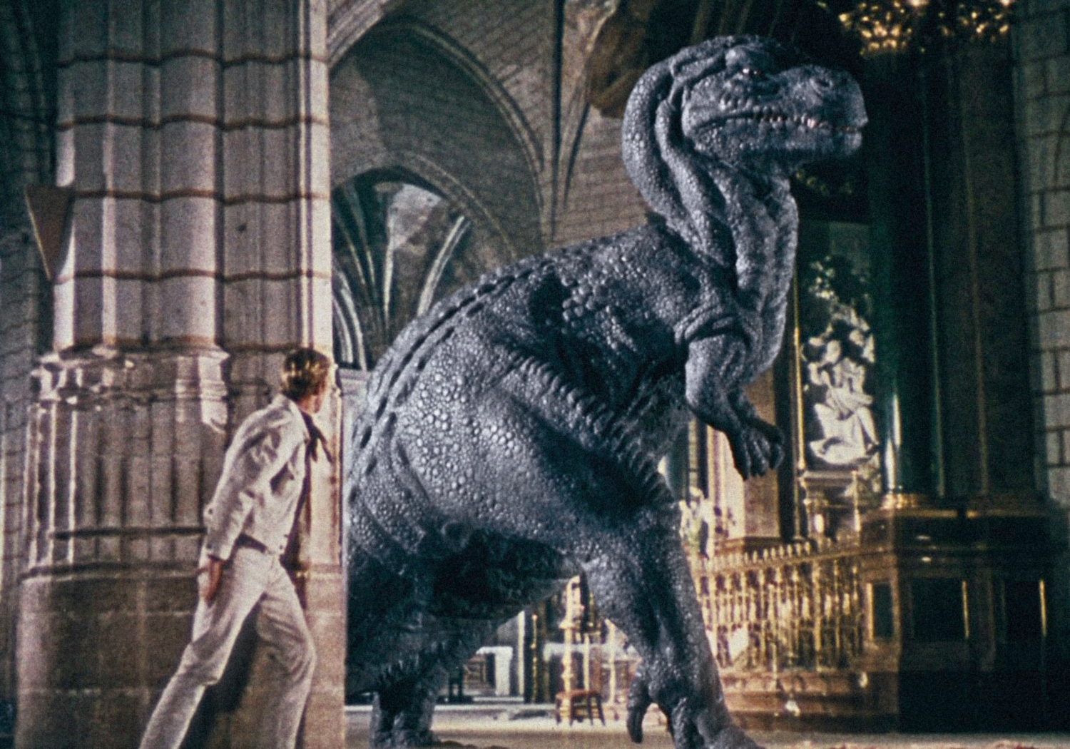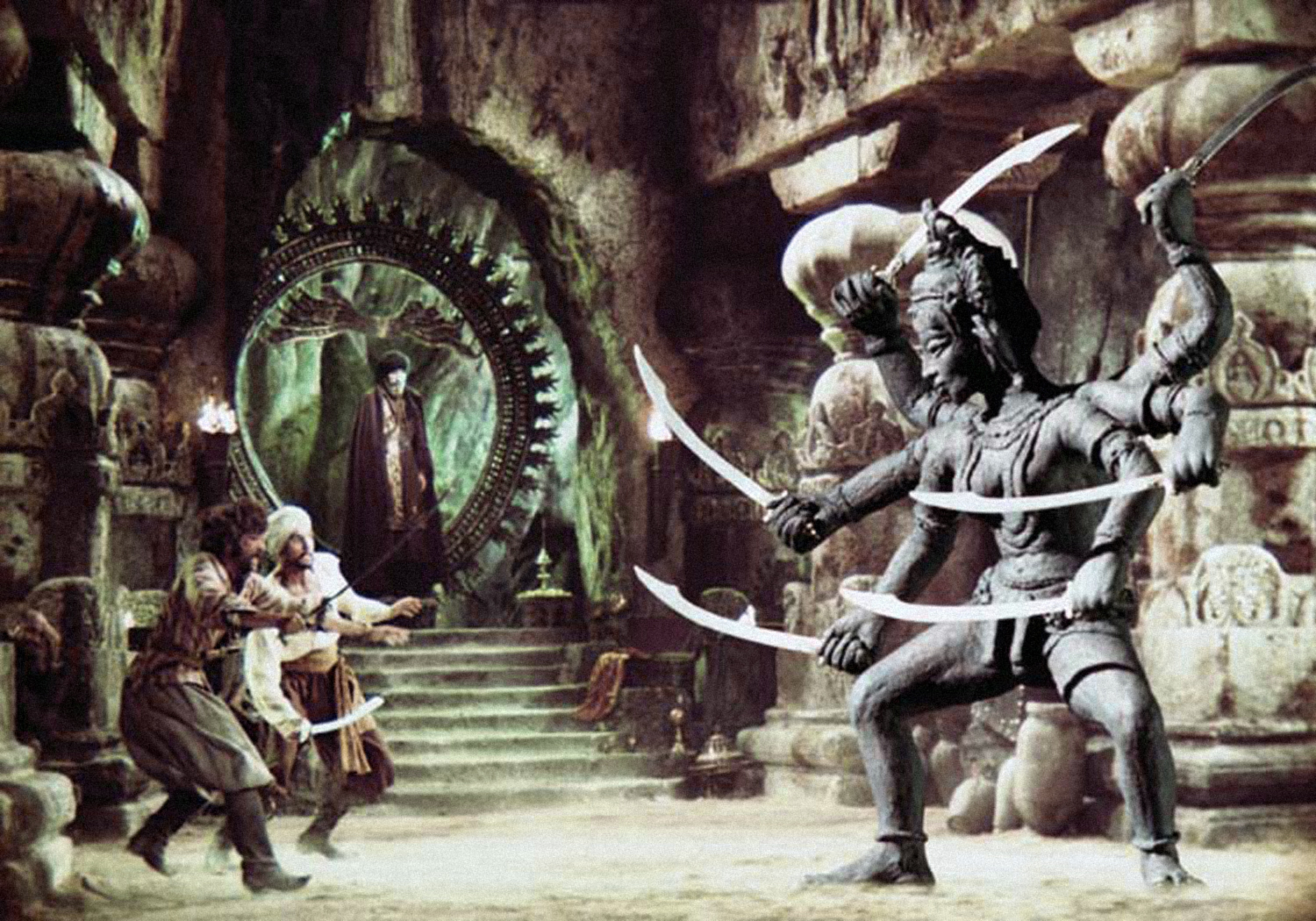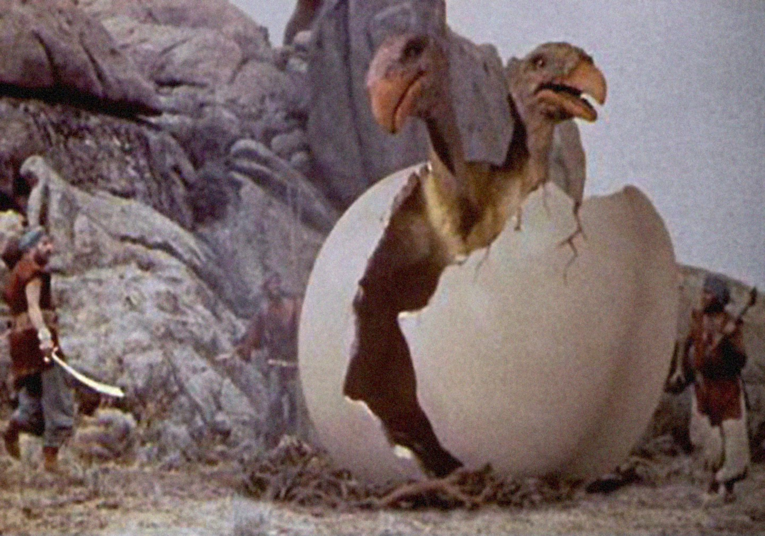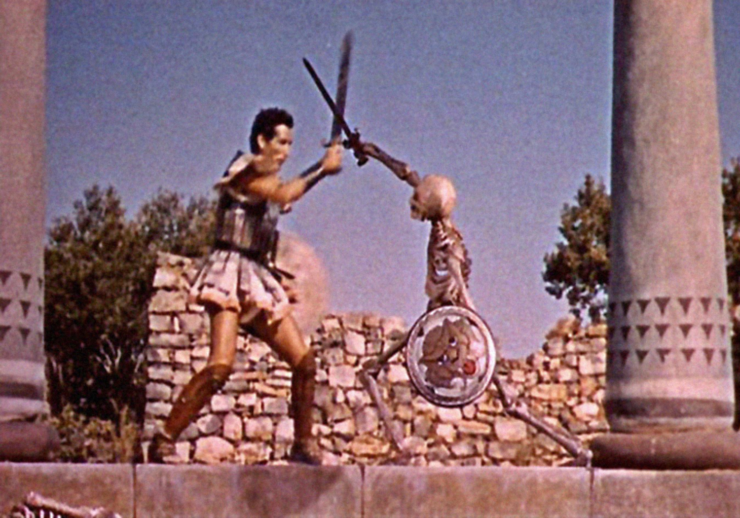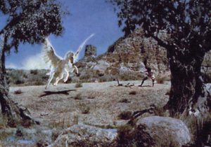 Eohippus—The Valley of Gwangi (1969): Harryhausen drew upon an old story idea of Willis O’Brien’s for this fantasy/adventure that begins with the discovery and capture of a living specimen of the prehistoric “Dawn Horse.”Gwangi—The Valley of Gwangi (1969): The titular Allosaurus, here stalking James Franciscus through a giant cathedral, was closer in appearance to recreations at that time of Tyrannosaurus-Rex.Struthiomimus The Valley of Gwangi (1969): An ostrich-like dinosaur that quickly becomes a meal for Gwangi.Cyclops—The 7th Voyage of Sinbad (1958): Harryhausen’s most famous creature, the iconic Cyclops of Colossa.Roc—The 7th Voyage of Sinbad (1958): One of the creatures featured in this first of three Sinbad movies produced by Harryhausen and partner Charles H. Schneer.Snake Woman—The 7th Voyage of Sinbad (1958): A hapless handmaiden who is transformed into a dancing snake woman by Sokurah, the evil magician.Gryphon and Centaur—The Golden Voyage of Sinbad (1973): It’s good versus evil as these two legendary creatures square off for a fight before the Fountain of Destiny.Masthead—The Golden Voyage of Sinbad (1973): The masthead of Sinbad’s ship is magically brought to life and, here, throttles a crewman.Kali—The Golden Voyage of Sinbad (1973): Koura the evil magician, not yet a Timelord, brings to life this statue of a Goddess so that she may kill Sinbad.Troglodyte—Sinbad and the Eye of the Tiger (1977): A friendly, 8-foot-tall cave man that Sinbad’s party dubs “Trog.” The baboon, too, is stop-motion animated; he’s a heroic prince who has been cursed and turned into this primate.Giant Walrus—Sinbad and the Eye of the Tiger (1977): One of the beasts encountered by Sinbad and crew in Hyperborea.Smilodon—Sinbad and the Eye of the Tiger (1977): A Sabre-Tooth Tiger into which the evil sorceress Zenobia has transferred her spirit.Kraken—Clash of the Titans (1981): This giant sea monster, last of the Titans, is released to wreak havoc, and snack on Andromeda!Medusa—Clash of the Titans (1981): The Gorgon Medusa’s very stare can turn a man to stone! This film’s Medusa sequence is one of Harryhausen’s finest.Pegasus—Clash of the Titans (1981): The fabled flying horse is Perseus’ steed.Dioskilos—Clash of the Titans (1981): A two-headed dog, one of many mythological beasts populating this, Harryhausen’s final film.