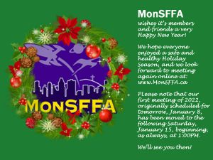 Happy New Year to all of the club’s members and friends! We hope you’ll join us for our first virtual meeting of 2022, scheduled for Saturday, January 15, 1:00PM-5:00PM.