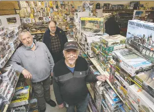 David Jenkins, from left, Paul Crépin and Anthony Chan at the Jonction Hobby Express shop in Dorval. The store is set to close after 27 years as the owners begin their retirement.
