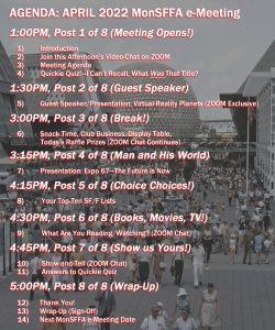 To join our ZOOM video-chat, which will run throughout the course of the meeting in tandem with the Web site-based content presented, simply click here and follow the prompts: This Afternoon’s MonSFFA e-Meeting on ZOOM