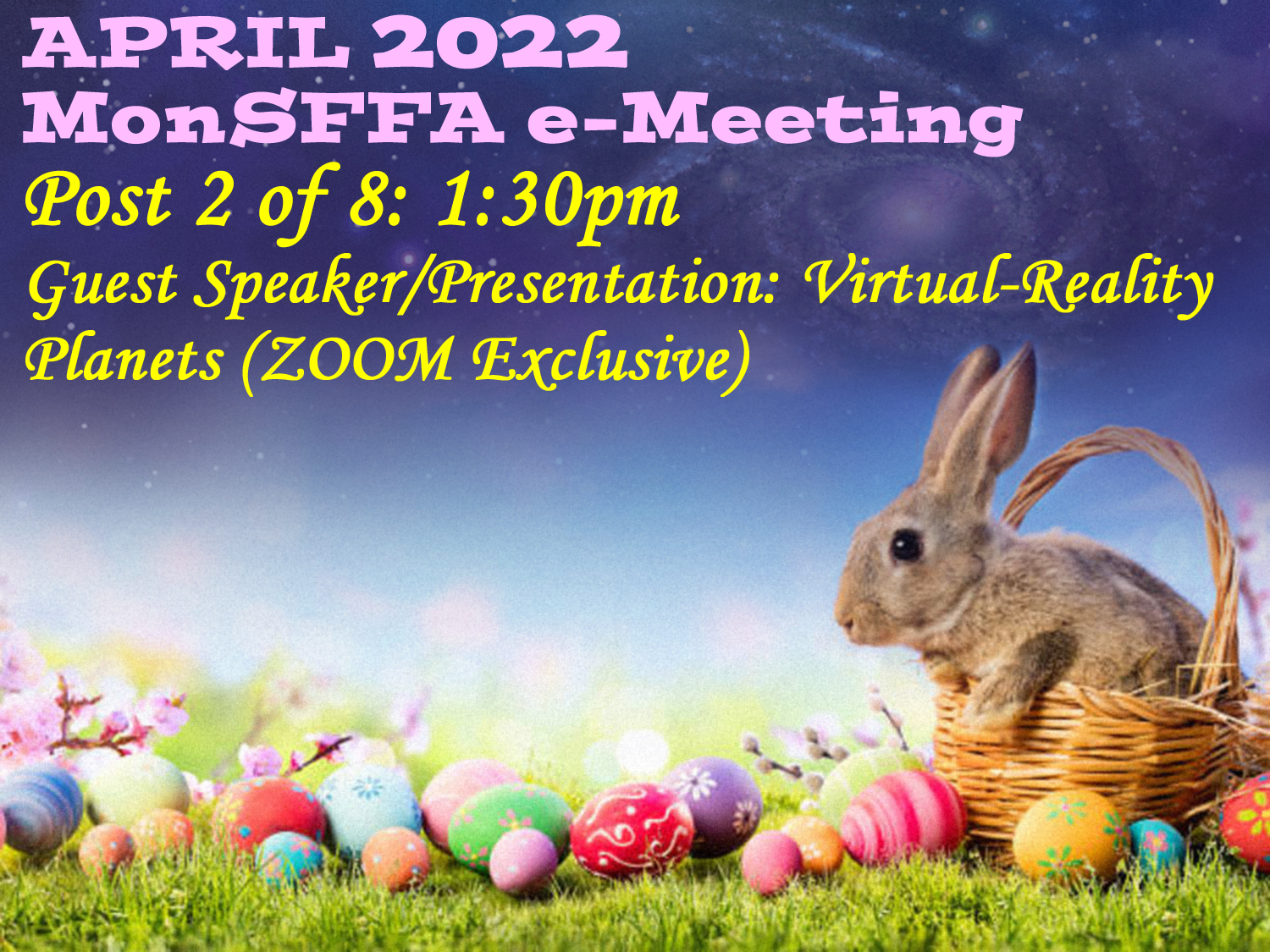 All of this will be taking place over the next 90 minutes as part of our ZOOM session. To join us on ZOOM, Click here: This Afternoon’s MonSFFA e-Meeting on ZOOM