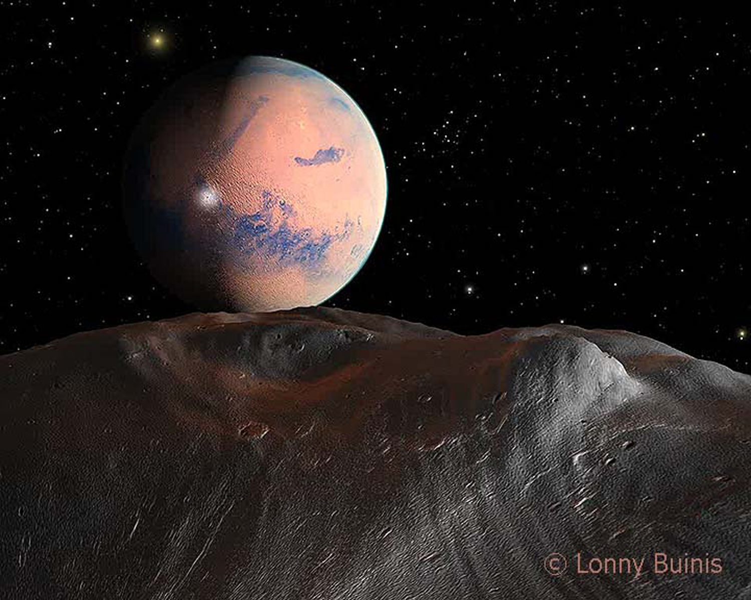 Lonny Buinis saw the SF movie classic 2001: A Space Odyssey (1968) during the film’s initial theatrical release, and wondered, “Do things in outer space really look like that?” He was set on a path which allowed him to combine his interest in both astronomy and art, and later, digital graphics, 3-D modelling and animation, and virtual reality.