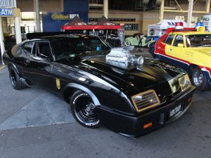 9) PURSUIT SPECIAL: Last of V-8 Interceptor’s, this is highway patrol officer Maxwell “Mad Max” Rockatansky’s police car, a specially modified, supercharged 1973 Ford Falcon XB GT. The Falcon was a production vehicle exclusive to Australia, where the original Mad Max (1979) was filmed.
