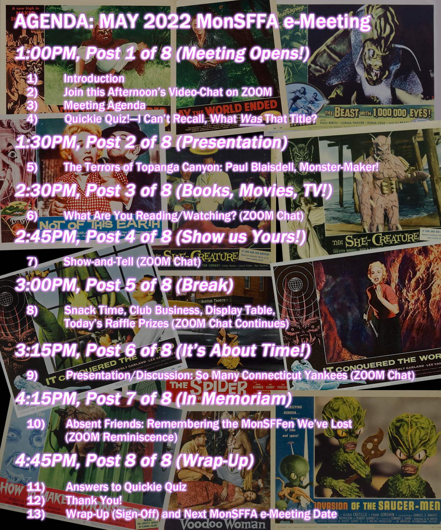 To join our ZOOM video-chat, which will run throughout the course of the meeting in tandem with the Web site-based content presented, simply click here and follow the prompts: This Afternoon’s MonSFFA e-Meeting on ZOOM