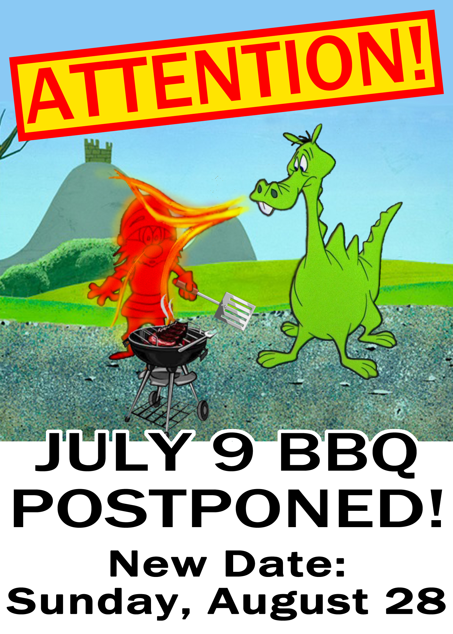 Eleventh-hour schedule change: we remind MonSFFen and friends that the club’s Summer-BBQ-in-the-Park 2022, originally slated for this afternoon, has been postponed until Sunday, August 28!