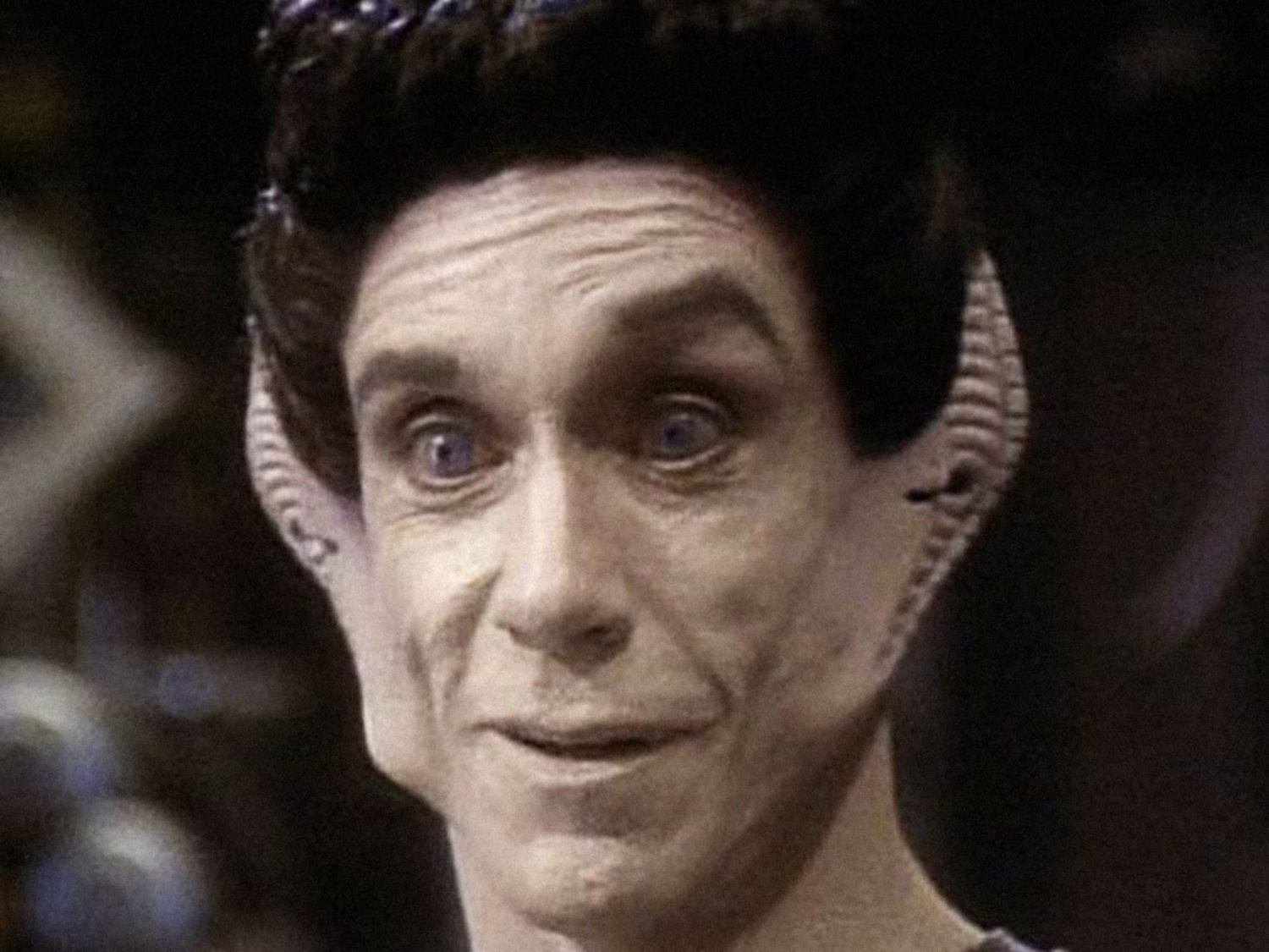 Drummer Mick Fleetwood, co-founder of Fleetwood Mac, is unidentifiable under all the rubber and make-up that transformed him into an Antedian dignitary for the Next Generation episode “Manhunt.”
