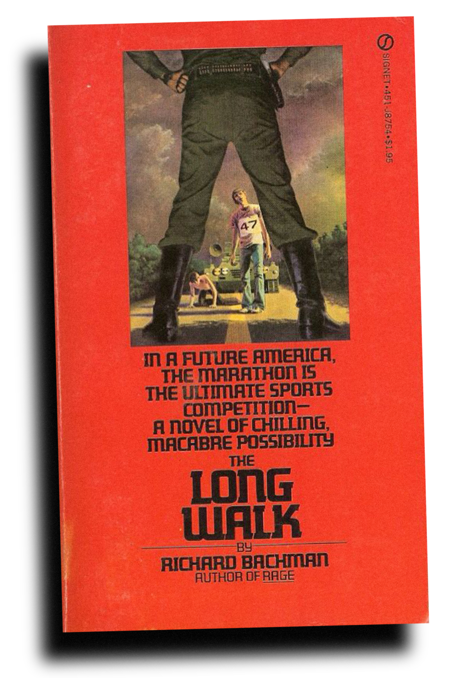 In a totalitarian America, a popular form of “entertainment” is the so-called Marathon—The Long Walk. This is an annual competition for teenaged boys, who must walk, non-stop, along U.S. Route 1 until but a single victor remains on his feet, having endured the grueling ordeal and claimed a substantial prize. Participants who falter face execution at gunpoint by soldiers following in a half-track!